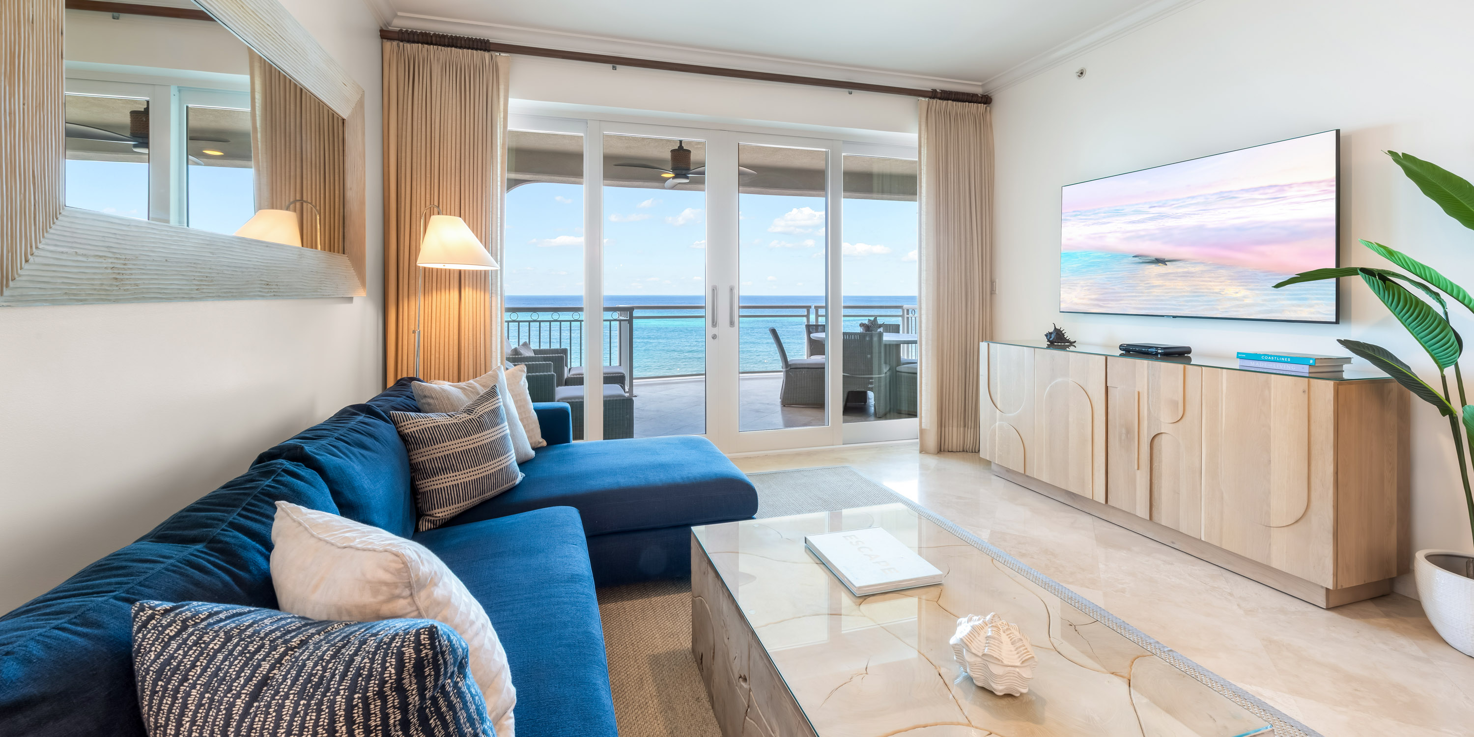 Each unit comes furnished with either a spacious oceanfront patio or a balcony. Ground floor units enjoy walk-out access from the patio to the pool deck and beach--very convenient! The upper floors, however, enjoy elevated balcony views of beautiful Seven Mile Beach.