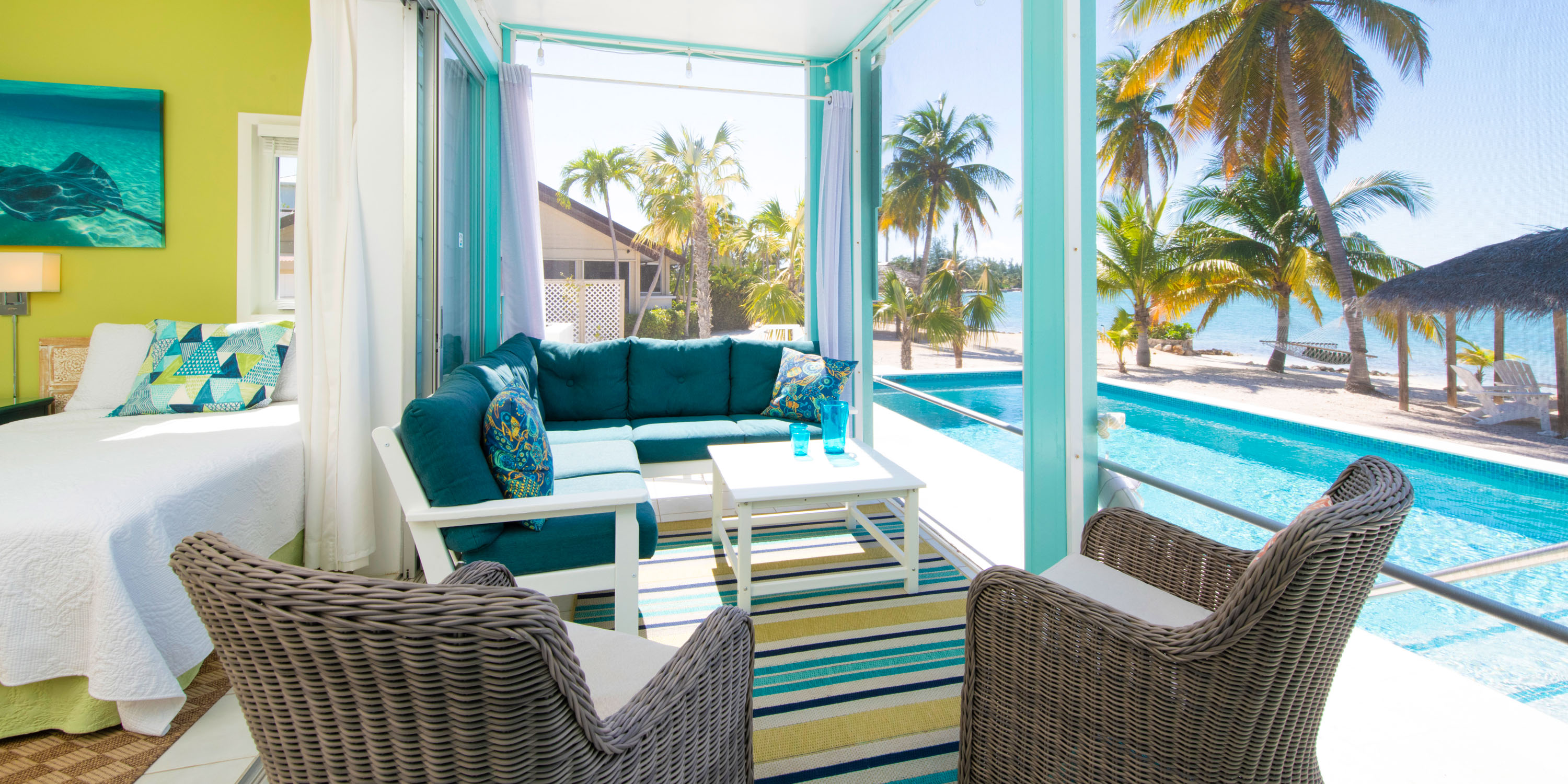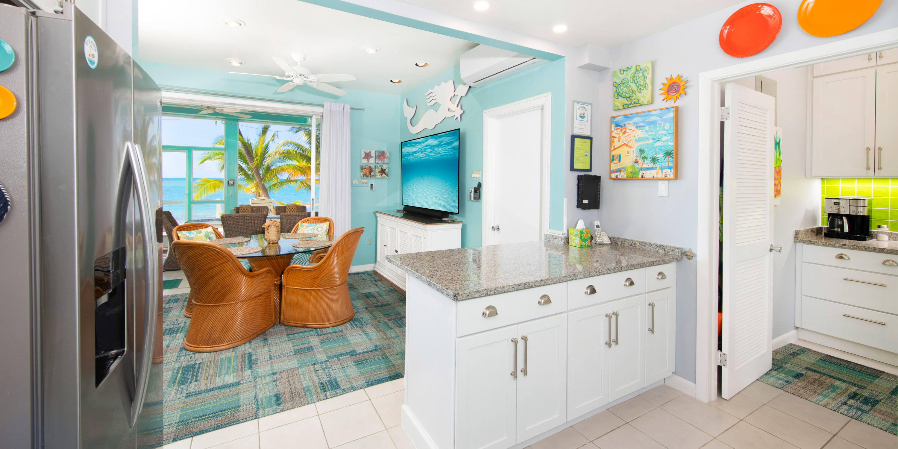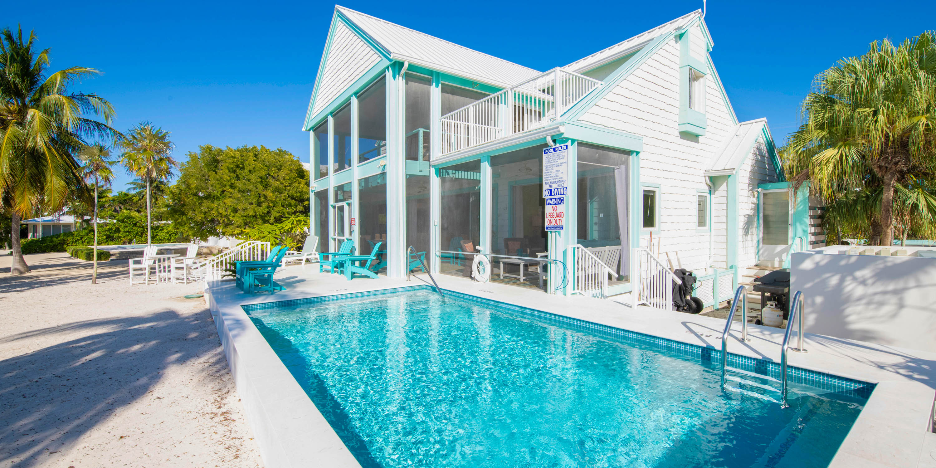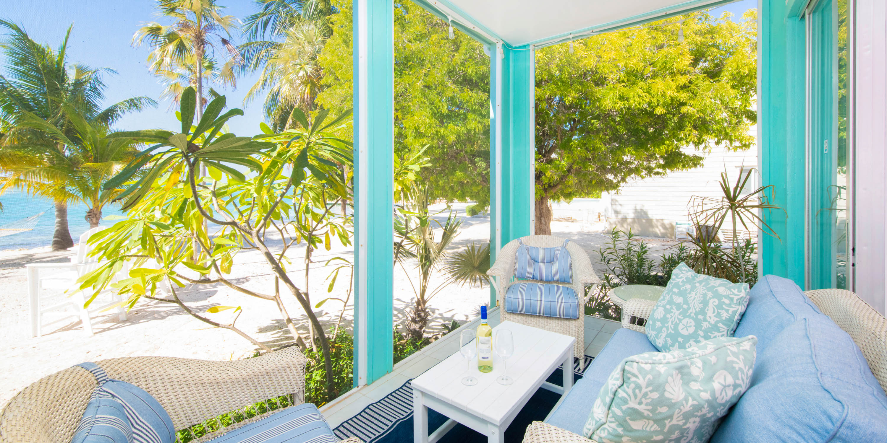 Upon entering Bit of Heaven, your eyes can't help but be drawn through the family room wall of sliding glass doors across the screened sunroom and out to the shimmering blue water. Coconut palm trees, a thatched beach cabana with Adirondack chairs, sun loungers, and a seaside hammock all beckon you to kick back and relax upon your private tropical white sand beachfront.