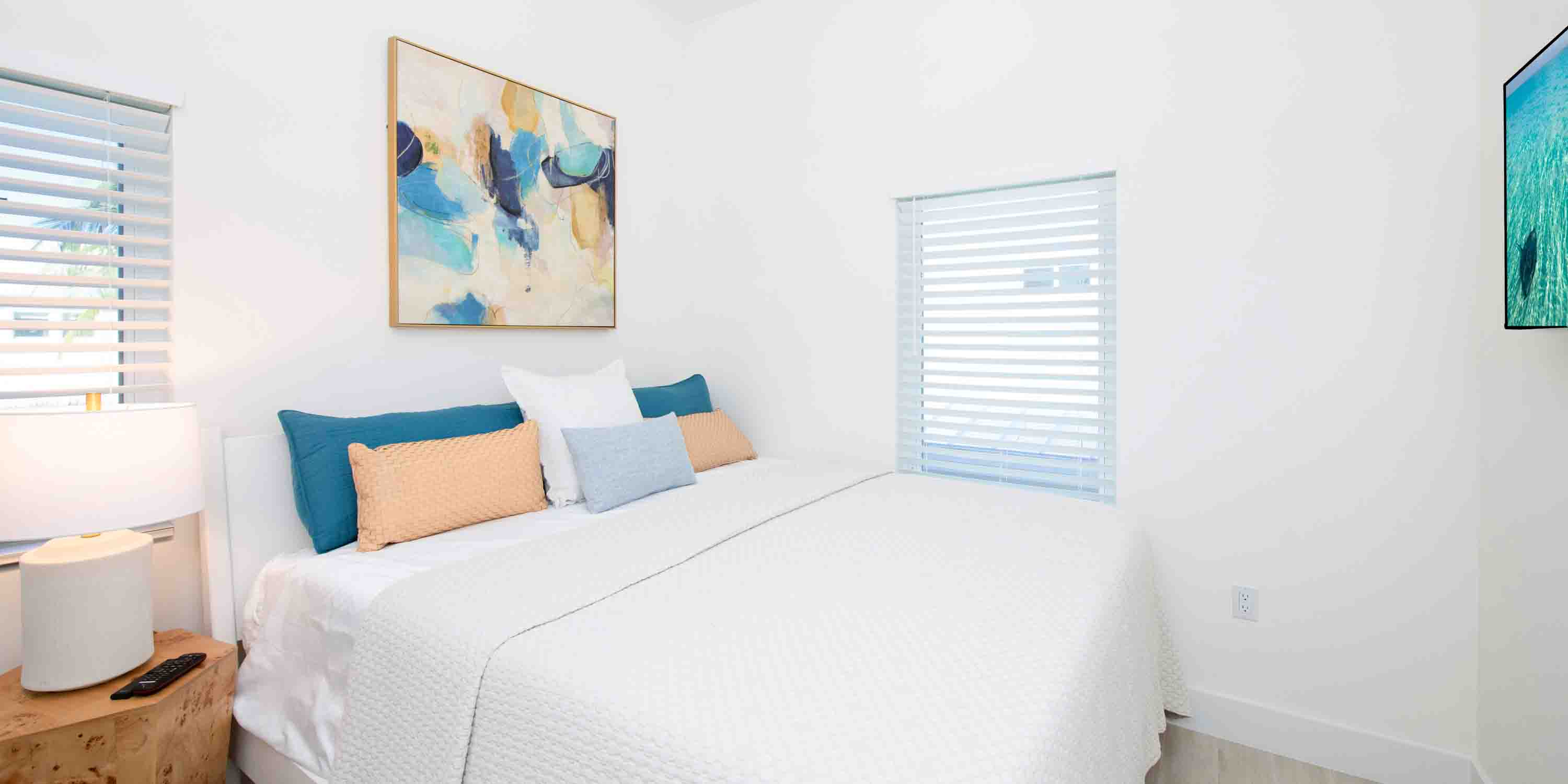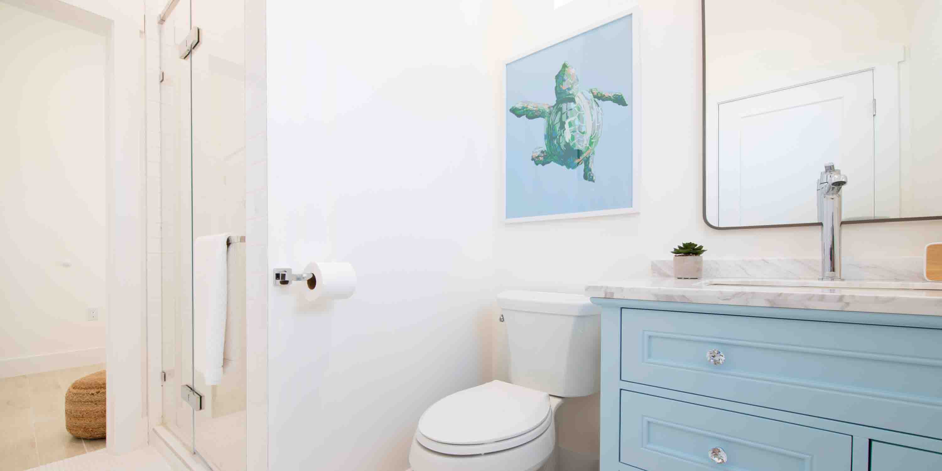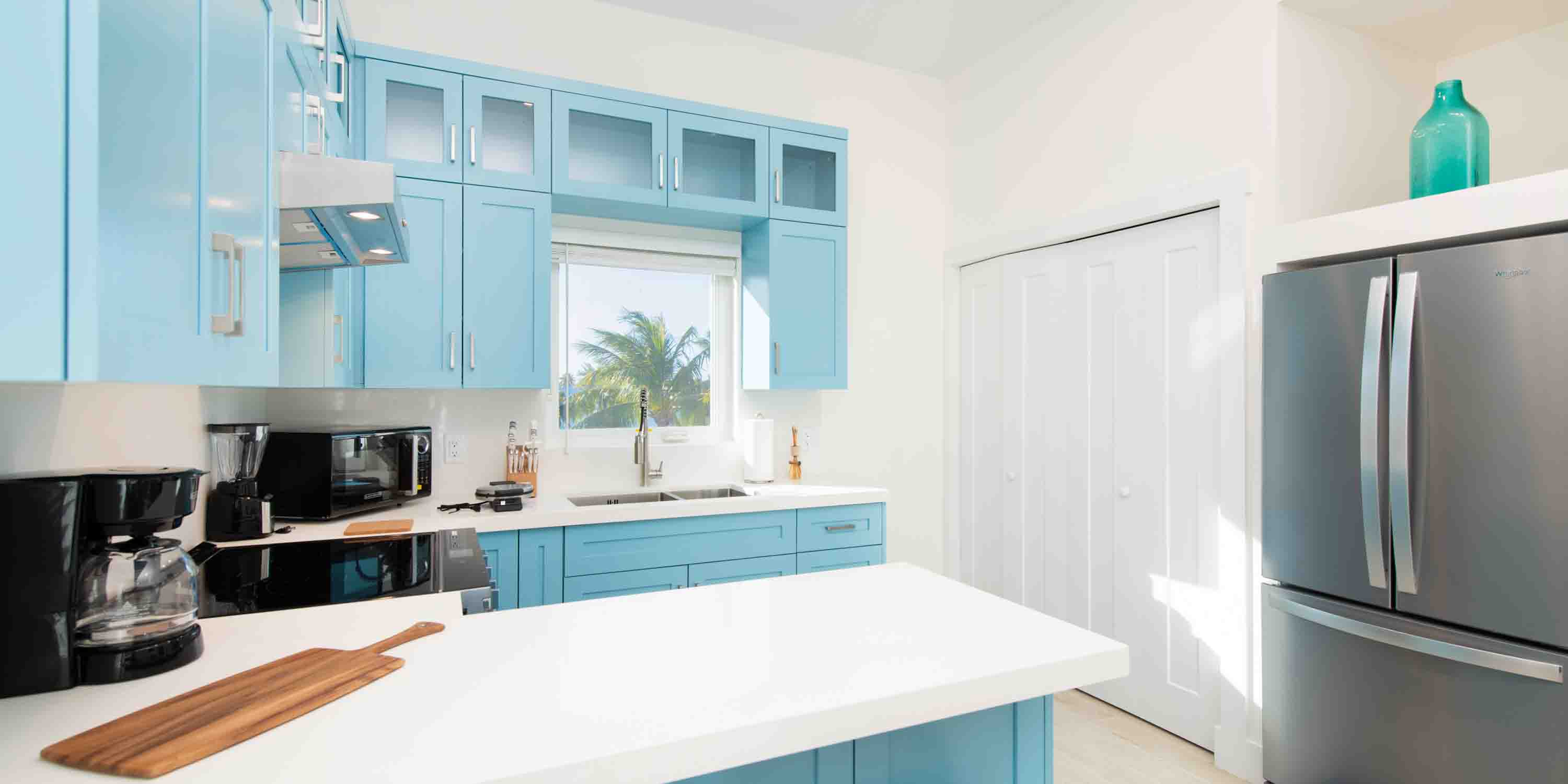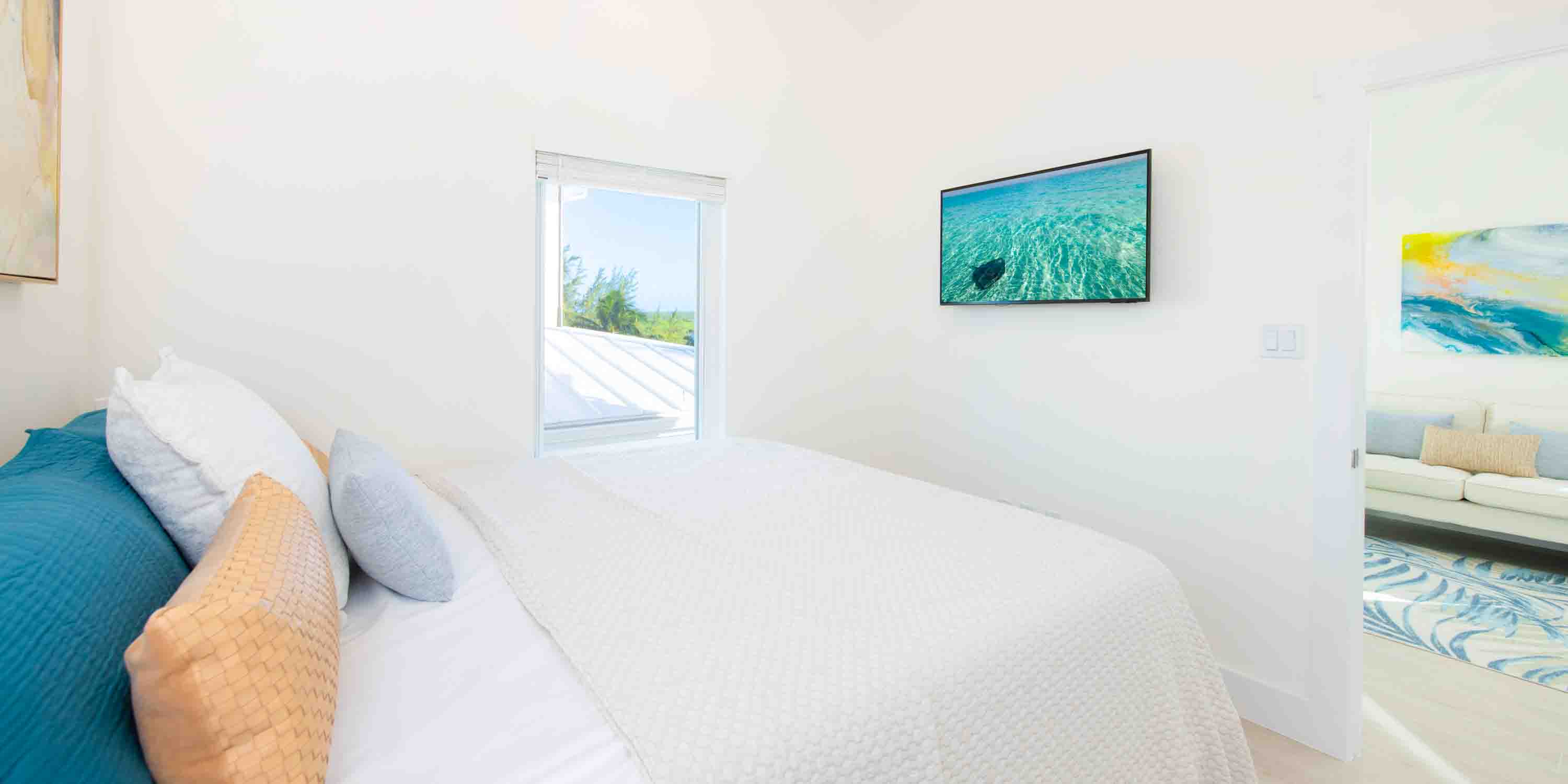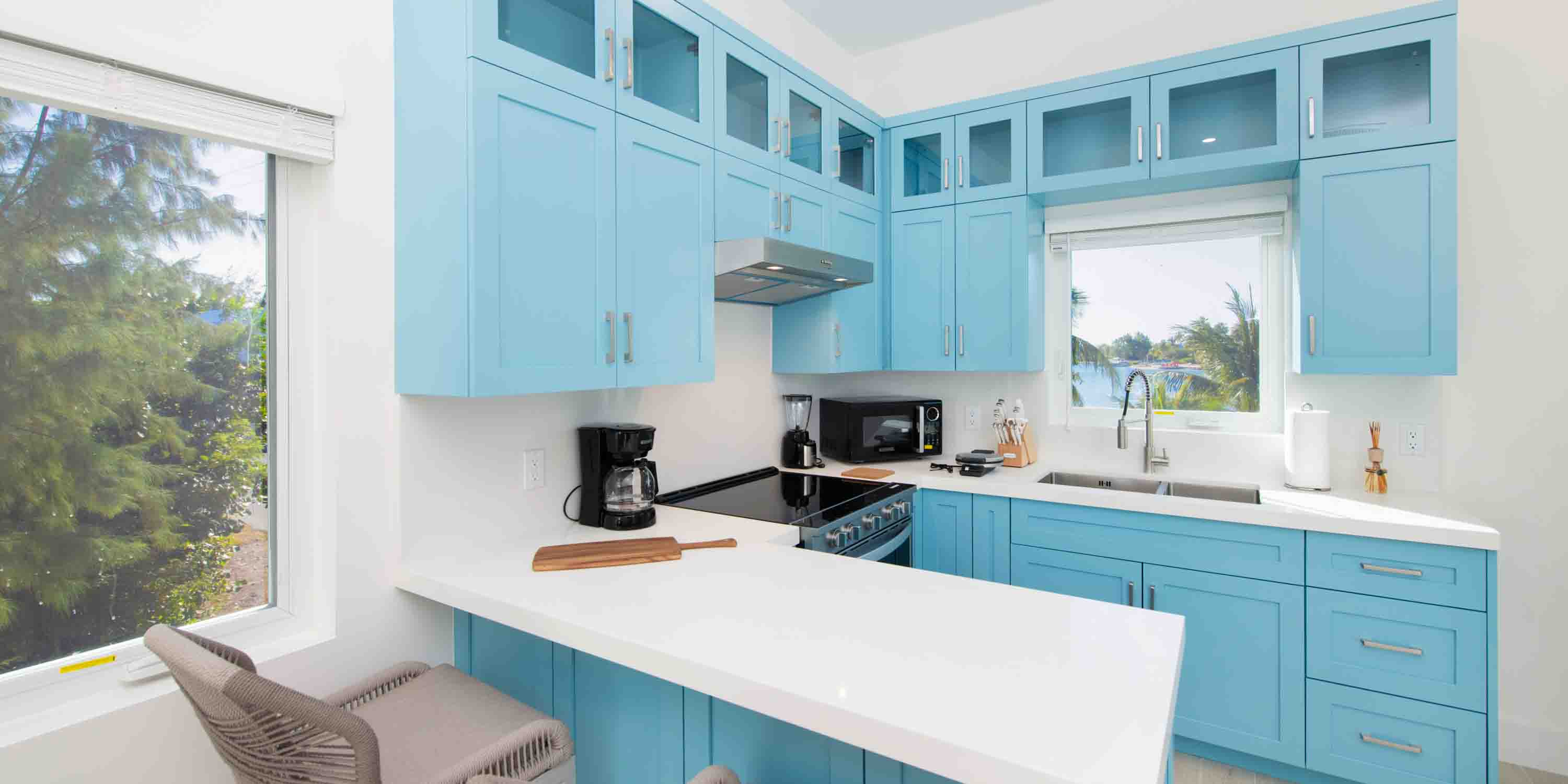 Designed with a calming blue color scheme, this modern retreat offers a seamless blend of luxury and island charm, accommodating up to 10 guests.