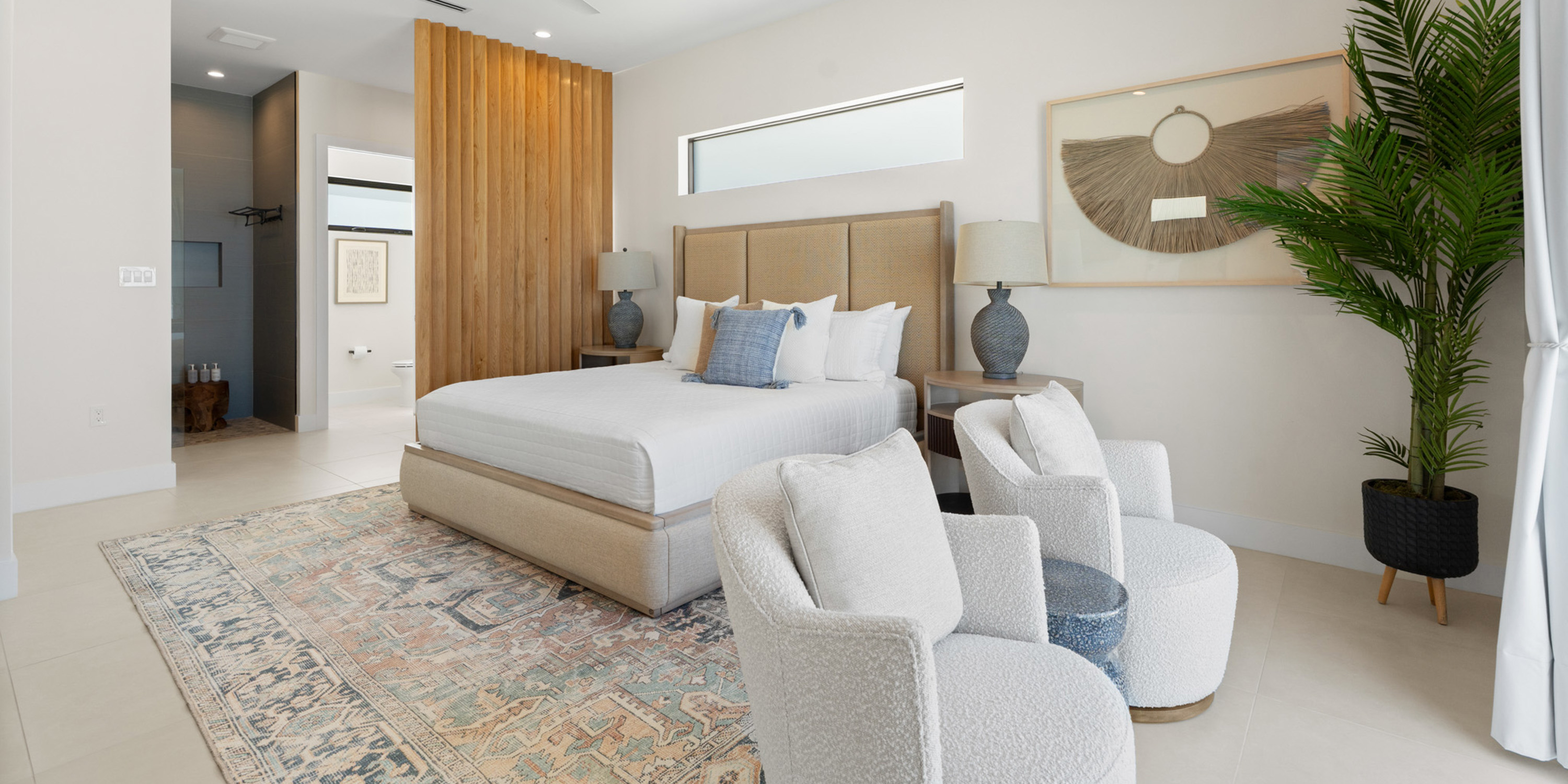 Coastal Charm offers three well-appointed bedroom suites designed for cloud-nine comfort. Each room provides a peaceful retreat after a day in the sun, with quality furnishings and a soothing coastal aesthetic.
