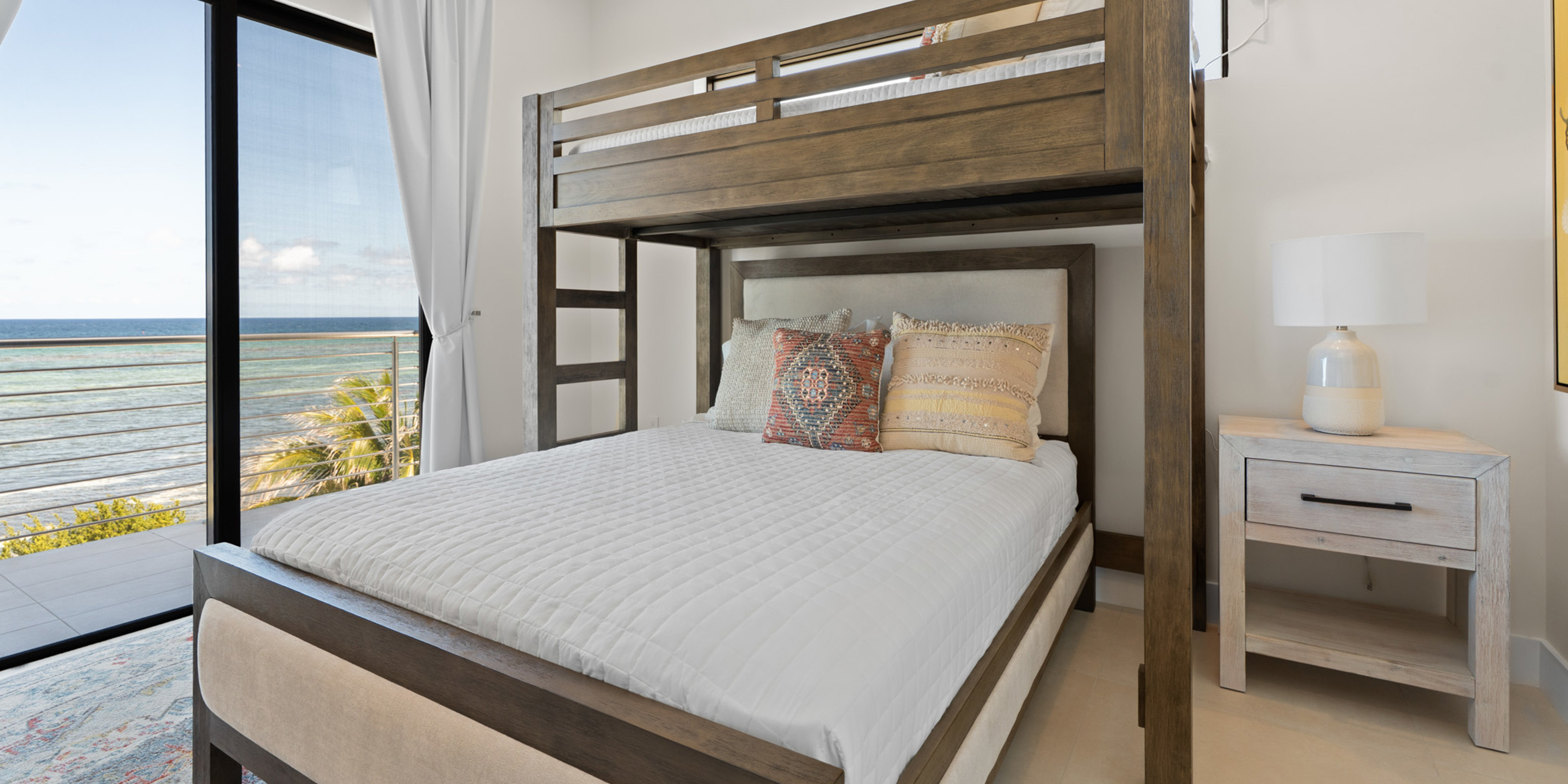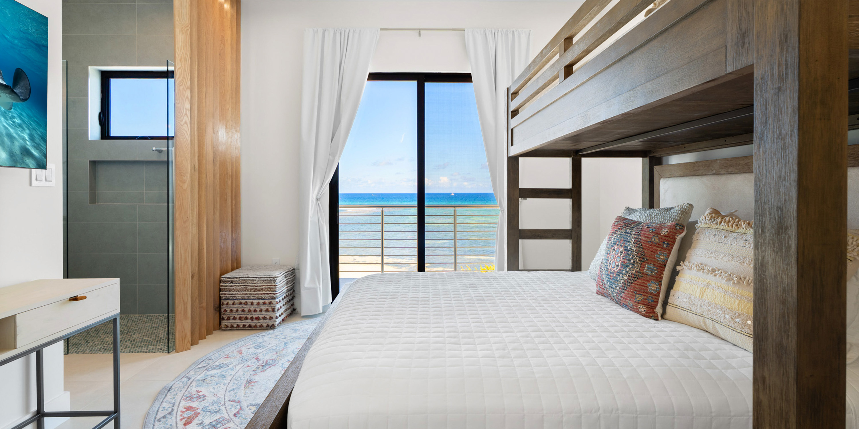 - Bedroom 3: upper level, ocean view, twin over queen bunk bed, HD TV, ensuite with shower.
