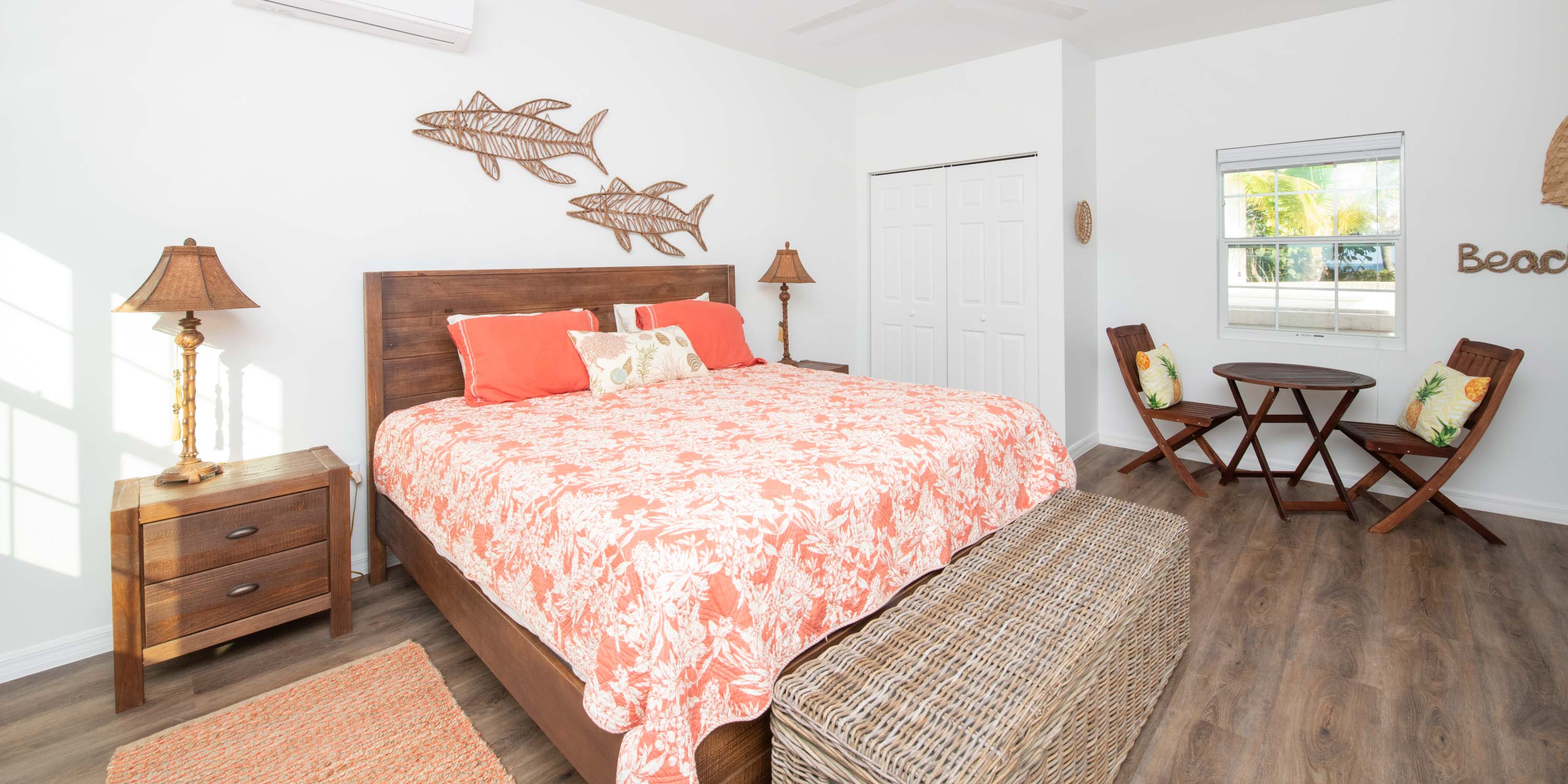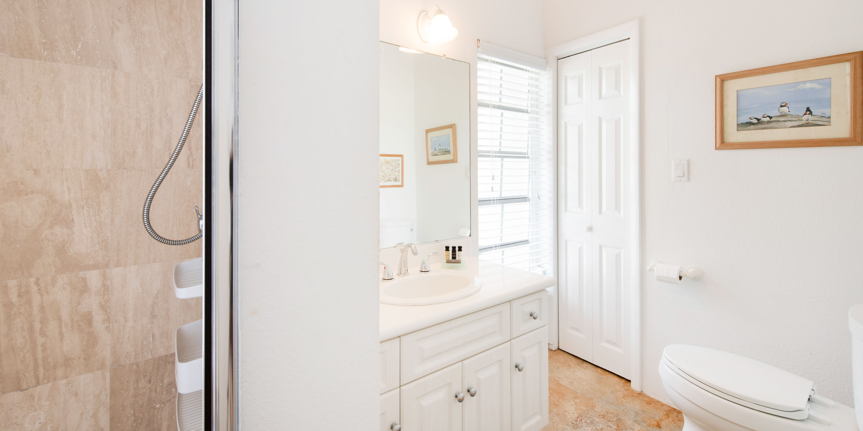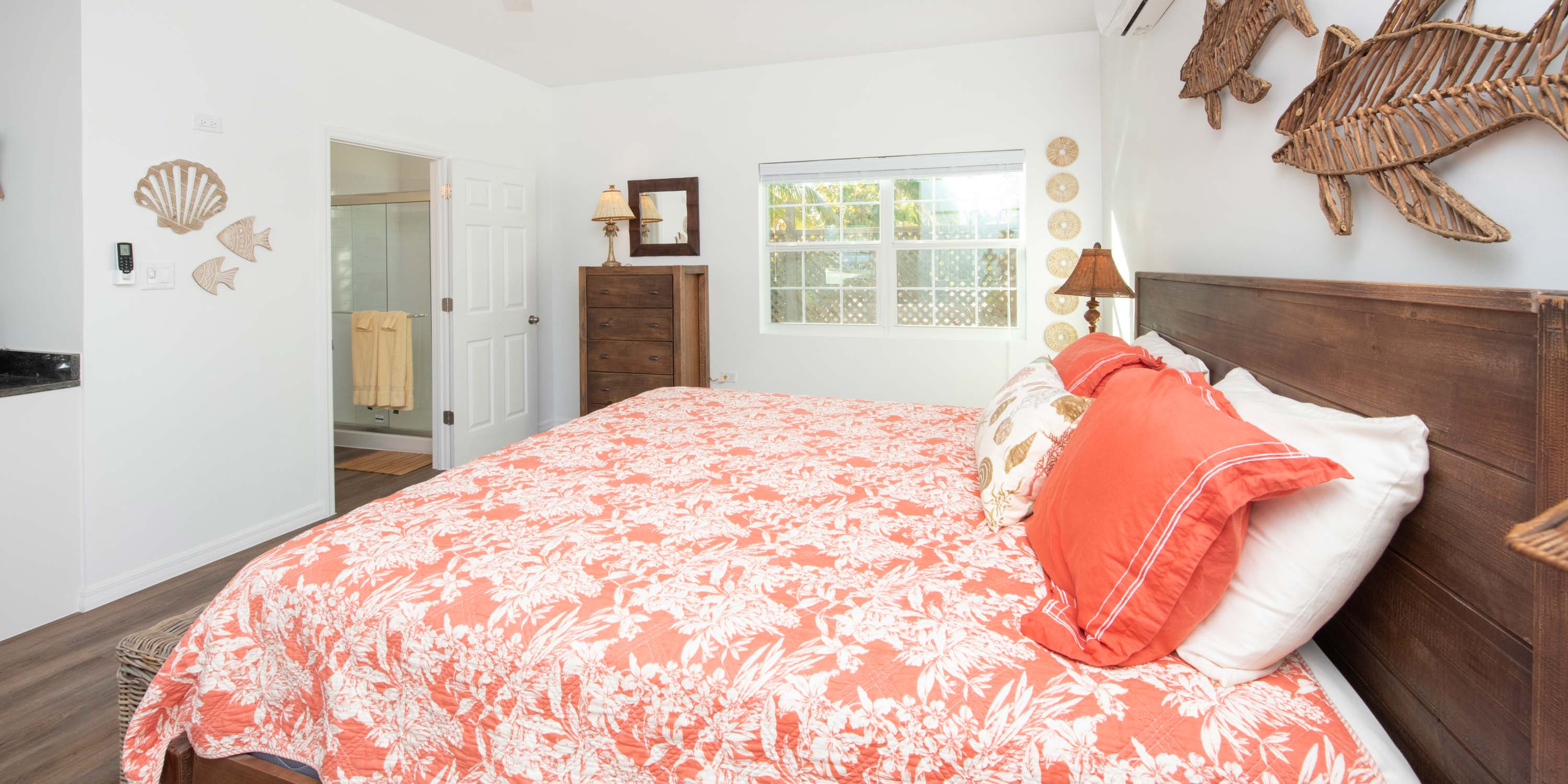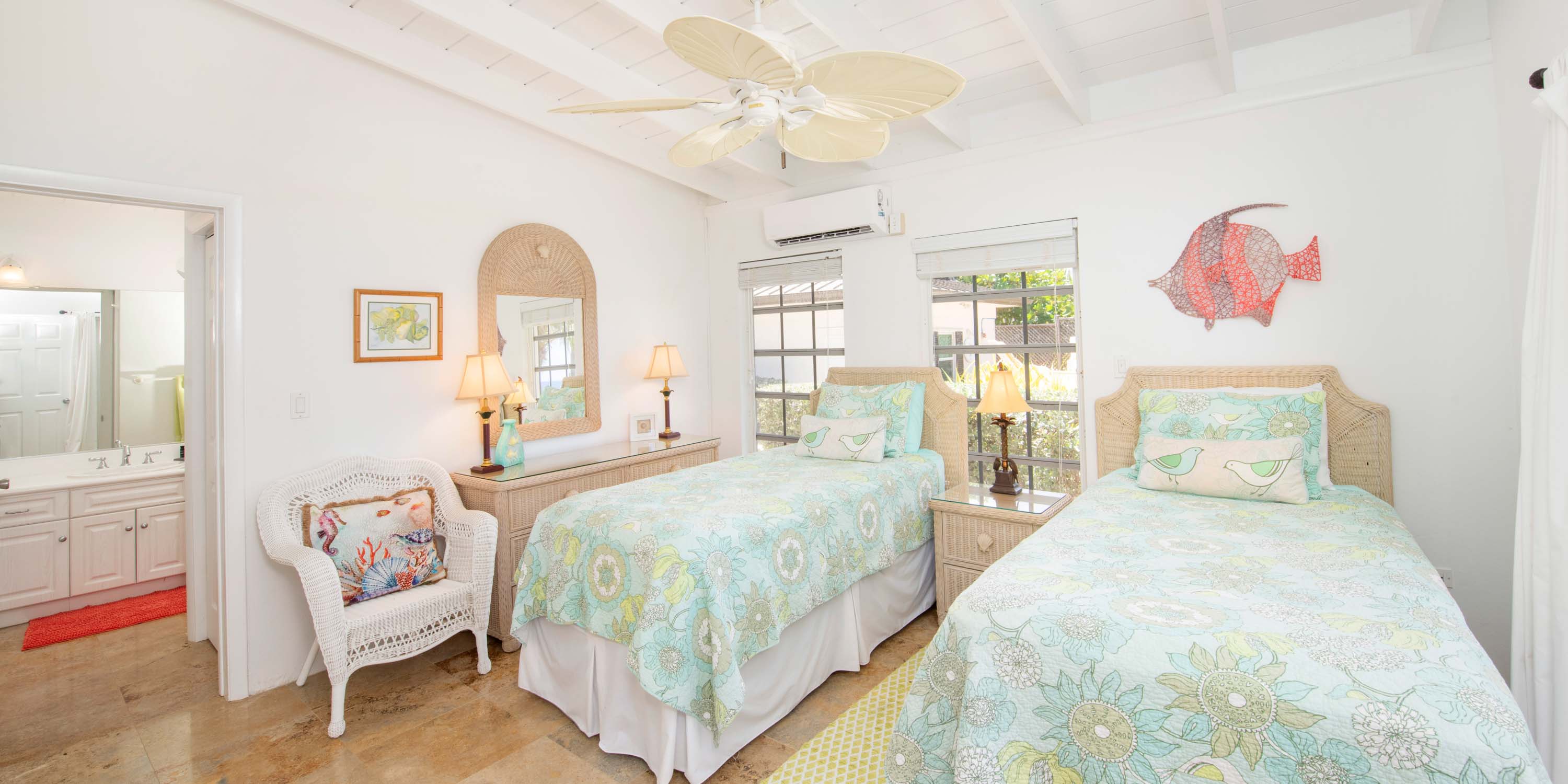 - Twin Suite – two twin beds, ocean views, walk-out access to the screened porch, ensuite with shower. Twin beds can be fitted into a king bed upon request.