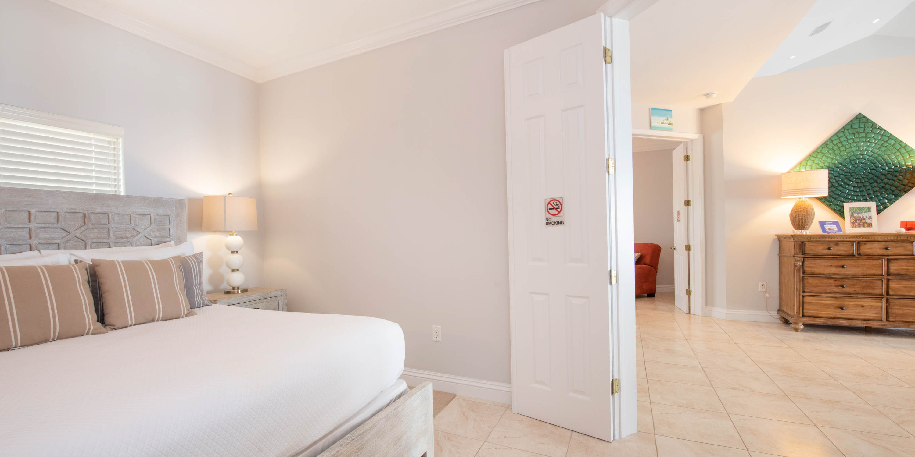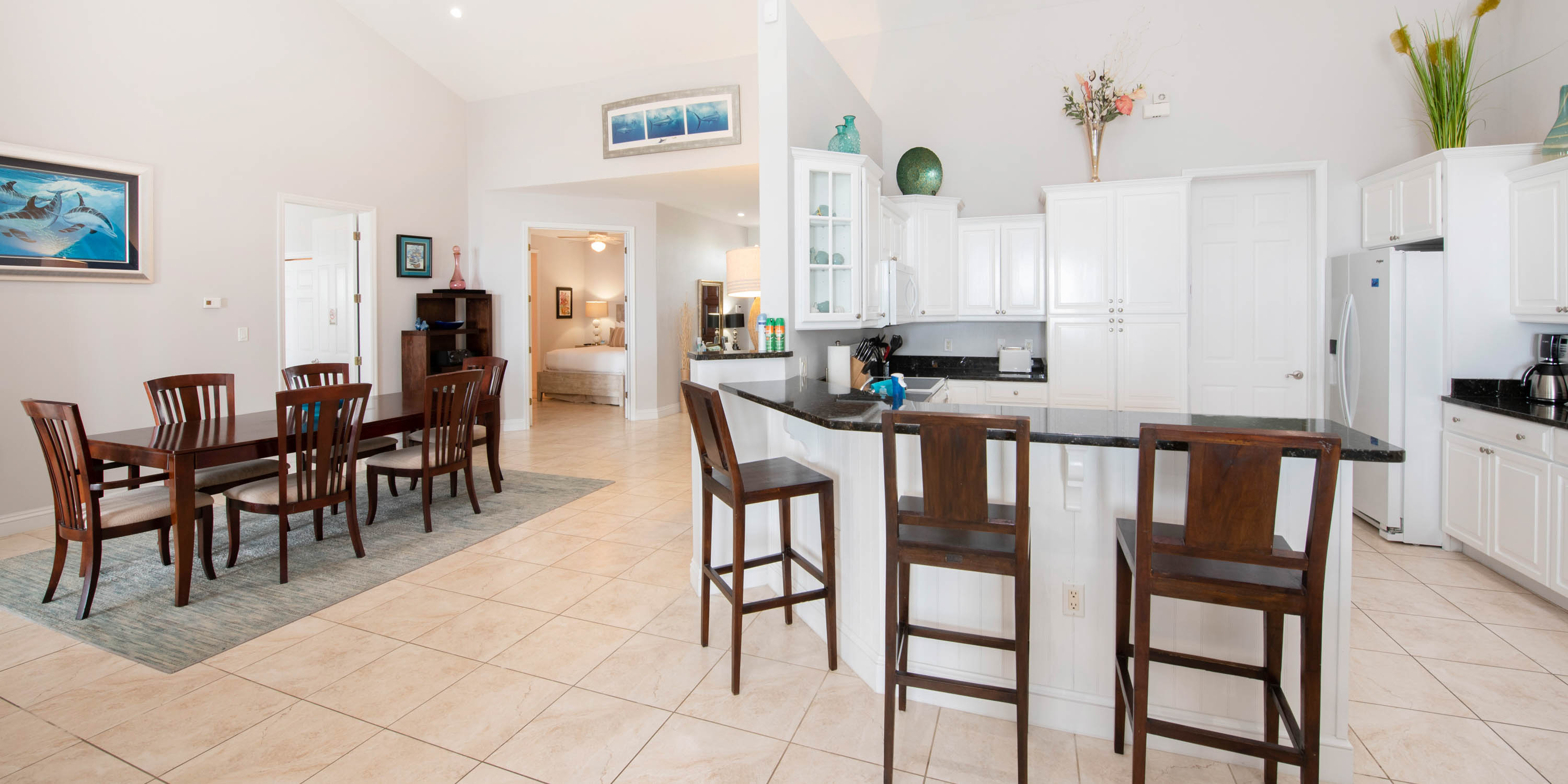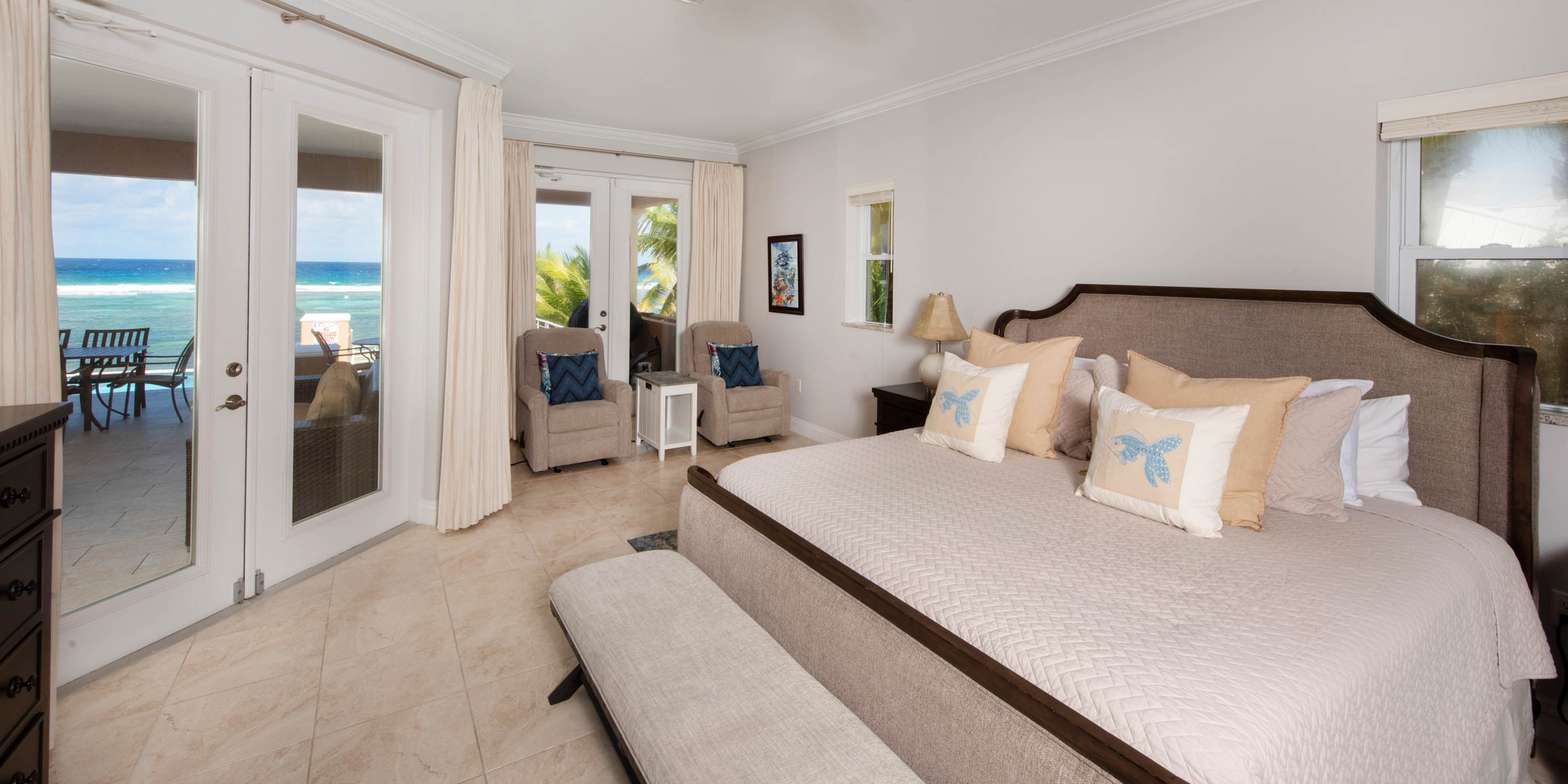 Coral Kai's interiors are spacious and bathed in Caribbean sunshine through oceanfront windows and French glass doors. A recent redecoration combines beachy vibes with cozy at-home comforts.