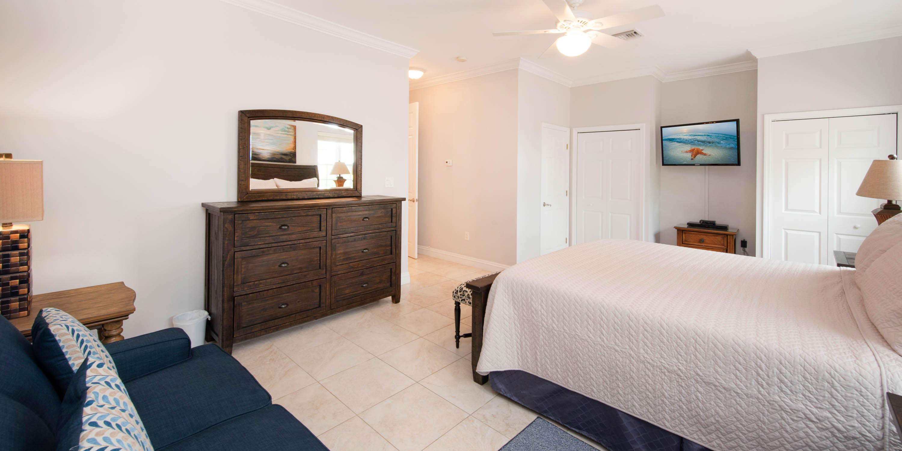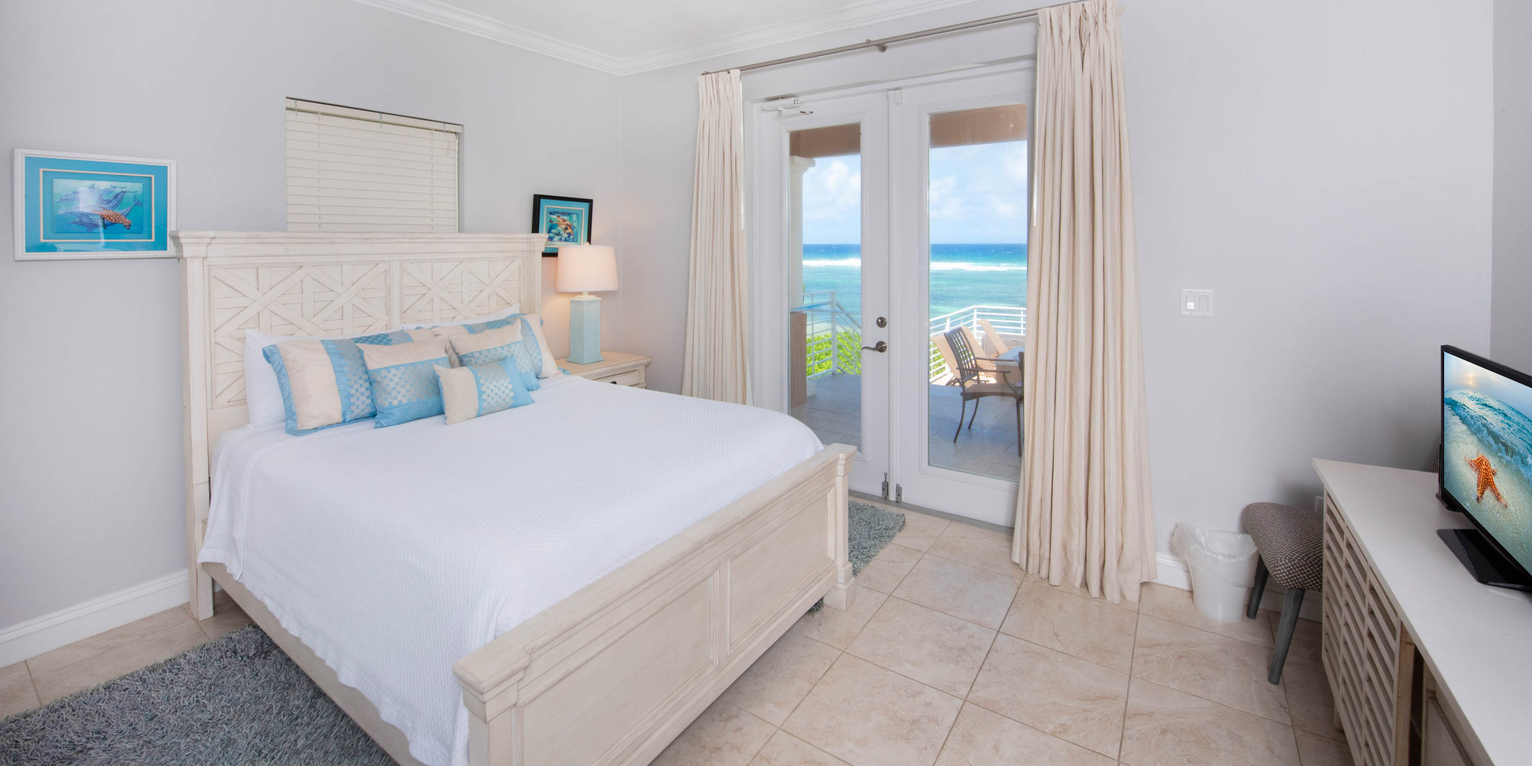 - Guest Suite #1: queen bed, oceanfront views, television, walk-out access to the pool deck, ensuite with shower.
