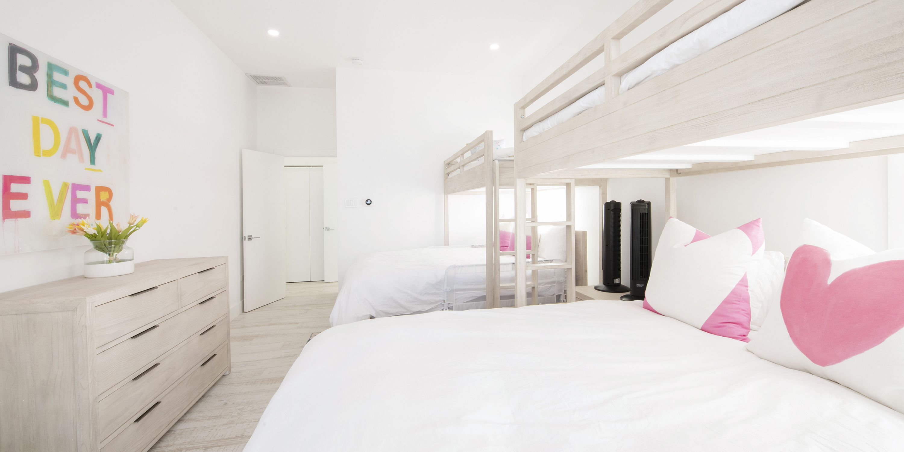 - South Suite - two sets of twin-over-queen bunk beds, water views, cable television, walk-out access to the screened veranda, and ensuite with shower. Sleeps 2 adults or up to 6 children.