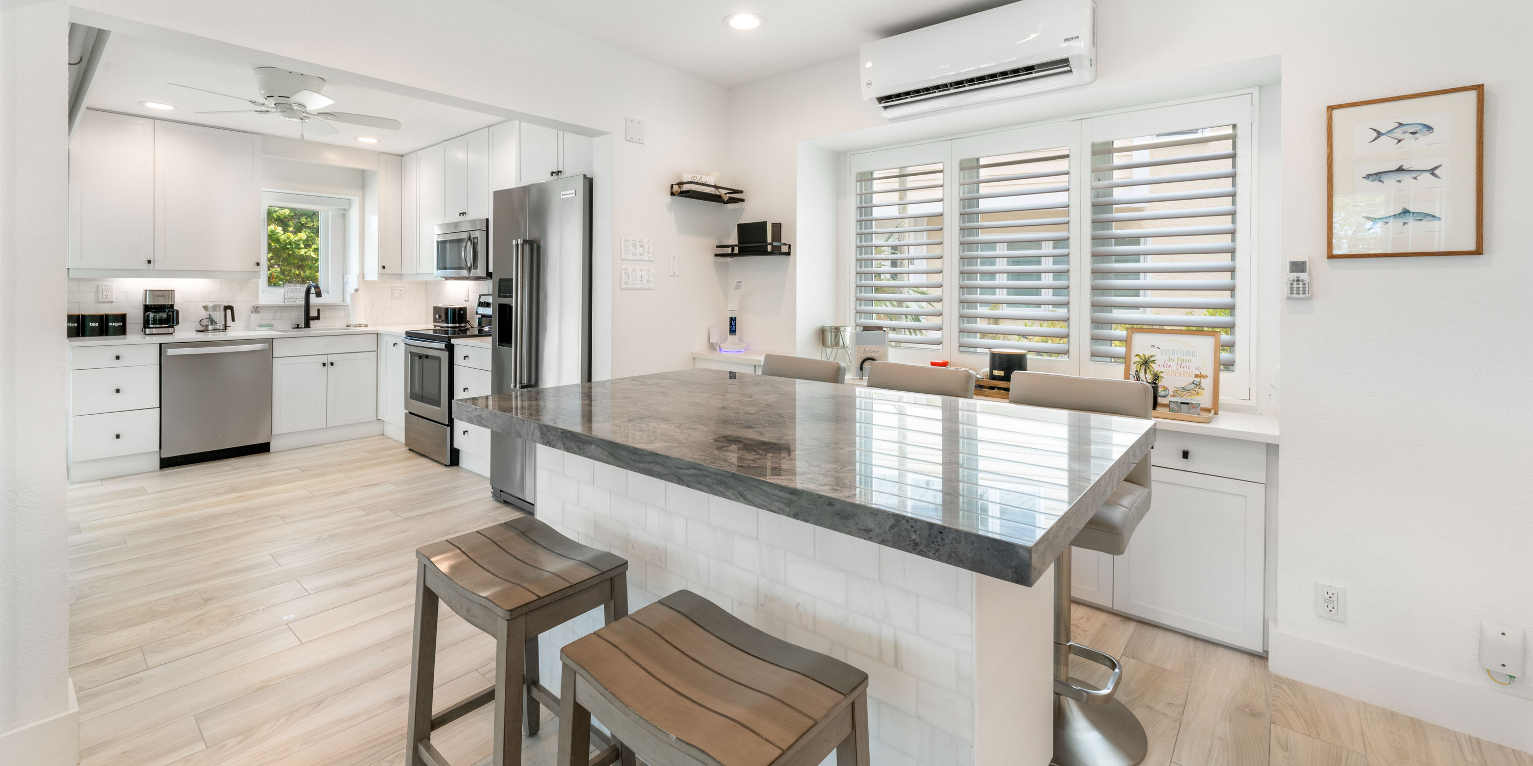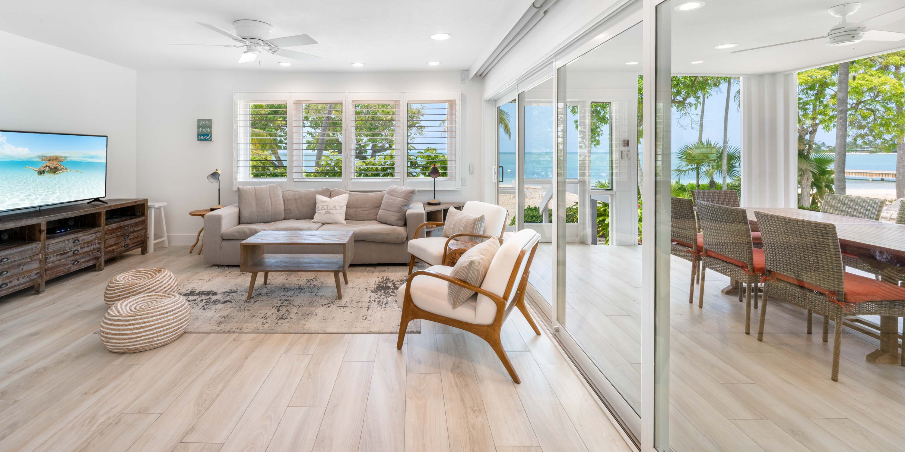 Villa #6 is the closest home to the water and has undergone a complete makeover both inside and out. A large, communal freshwater pool with sundeck and cabana sits just behind the home. Free off-street parking is also just 100 feet from the front door.