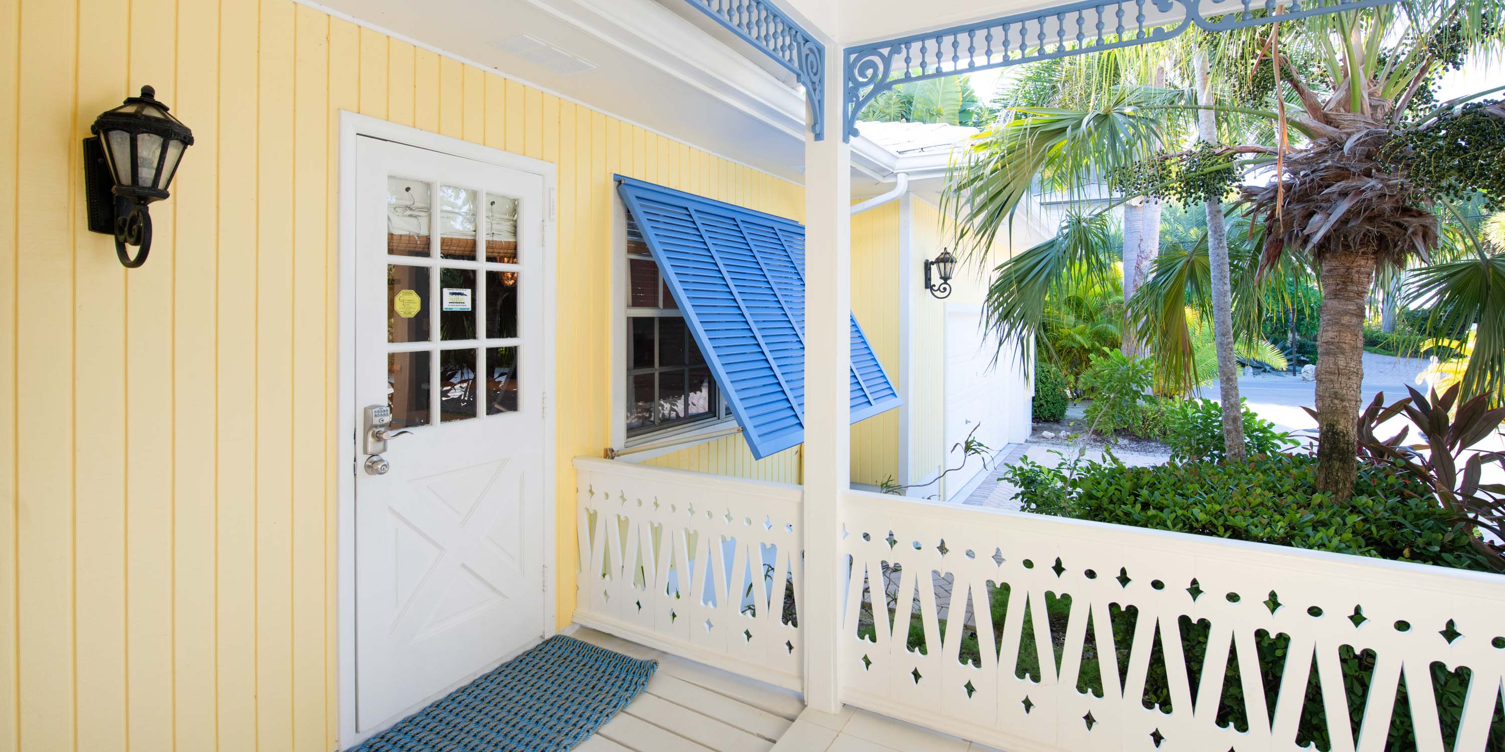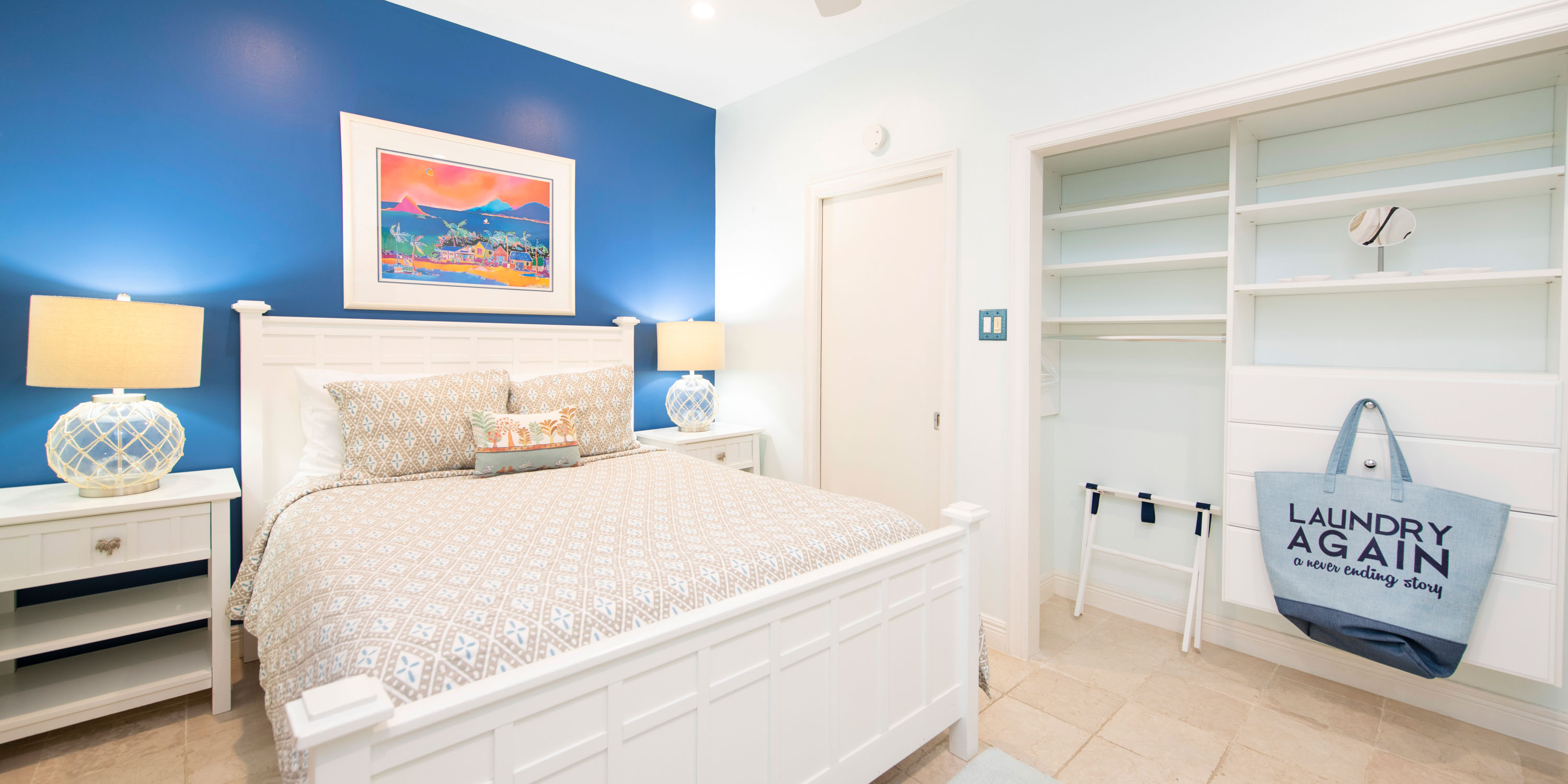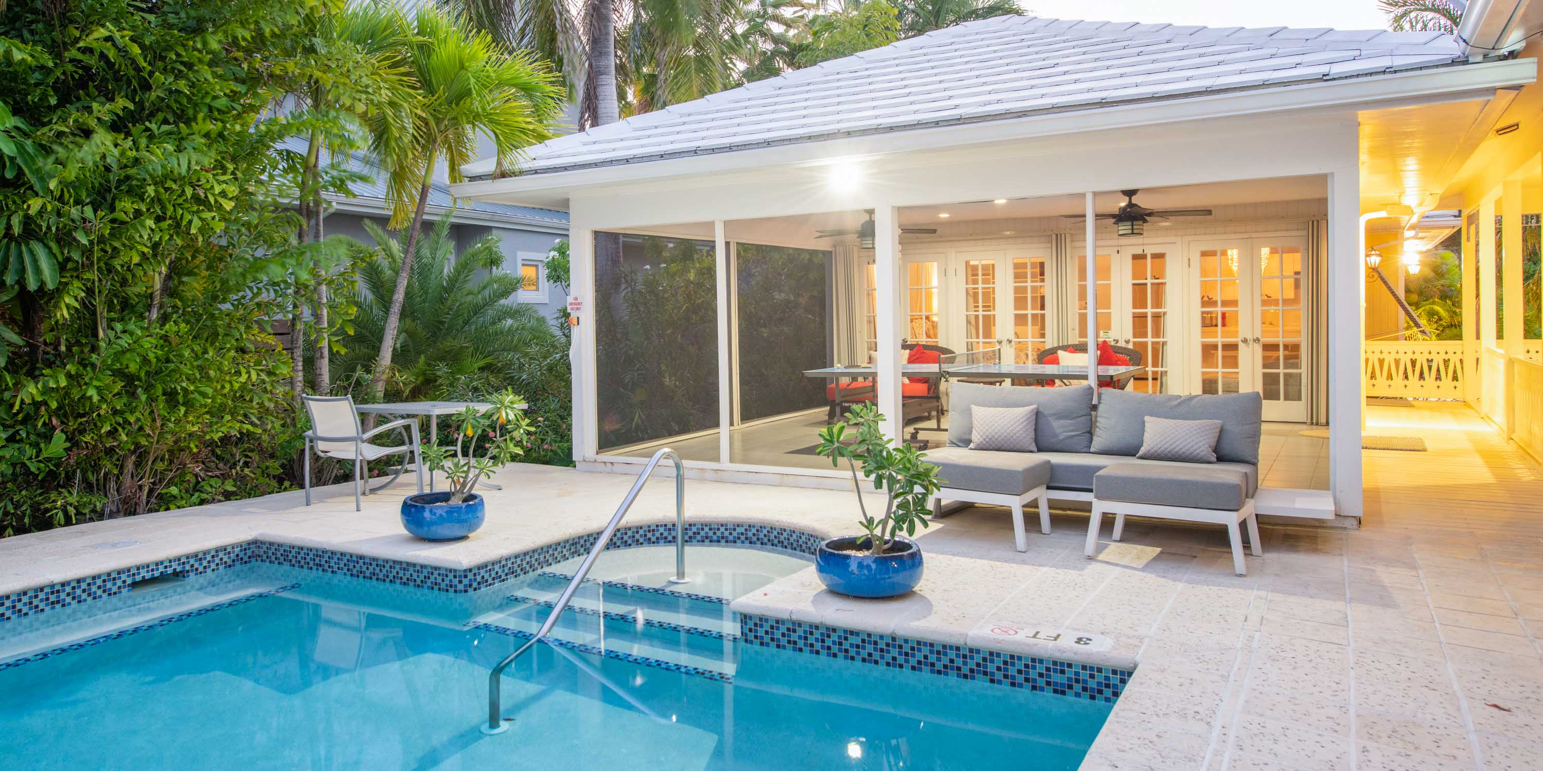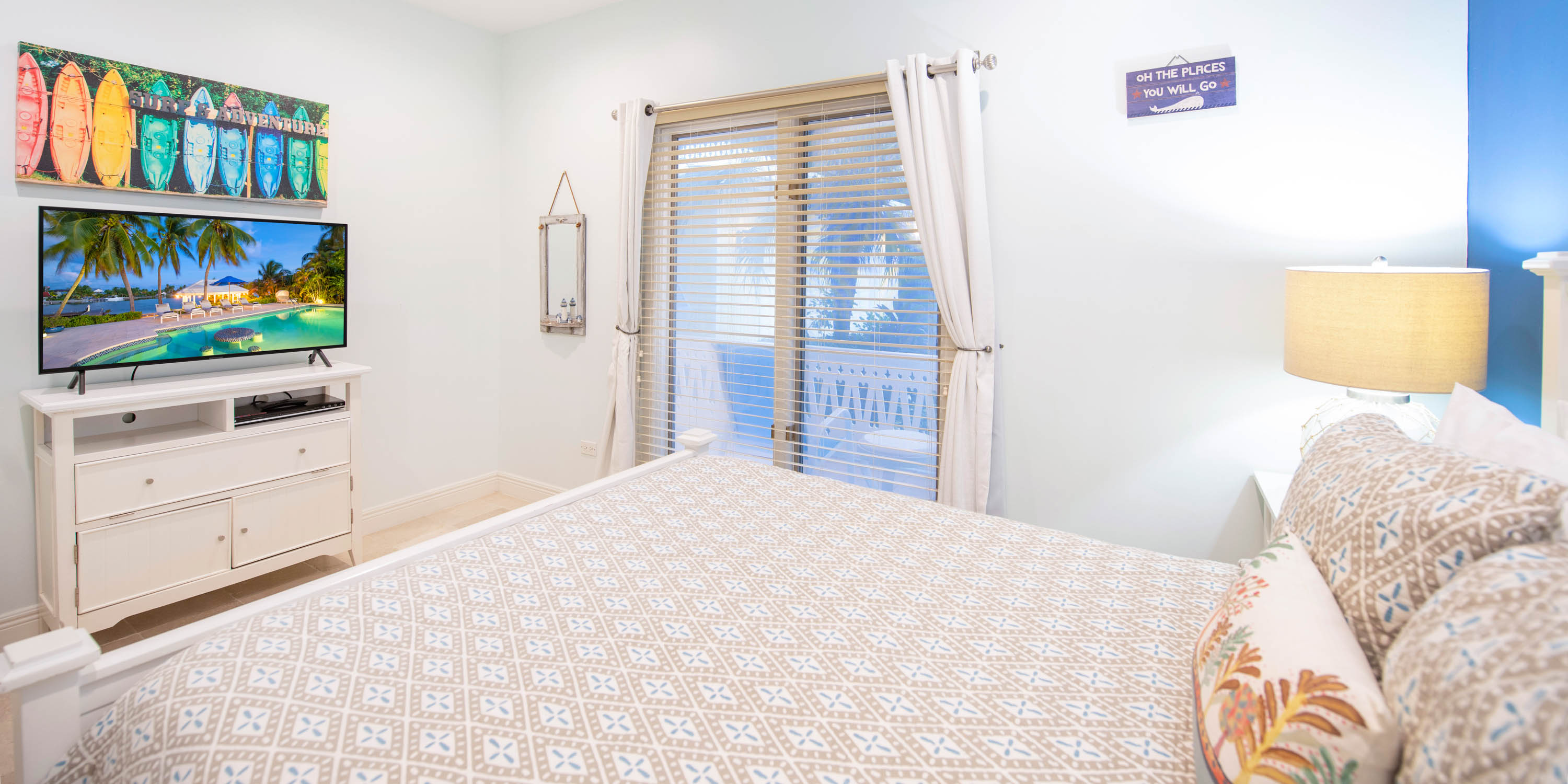 - Cottage Suite: detached from the main villa with private entry, kitchenette, water and pool deck views, king bed, sofa daybed (sleeps 2 children), television, walk-out access to a private screened porch with ping pong table and sofa loungers, ensuite with shower bath.