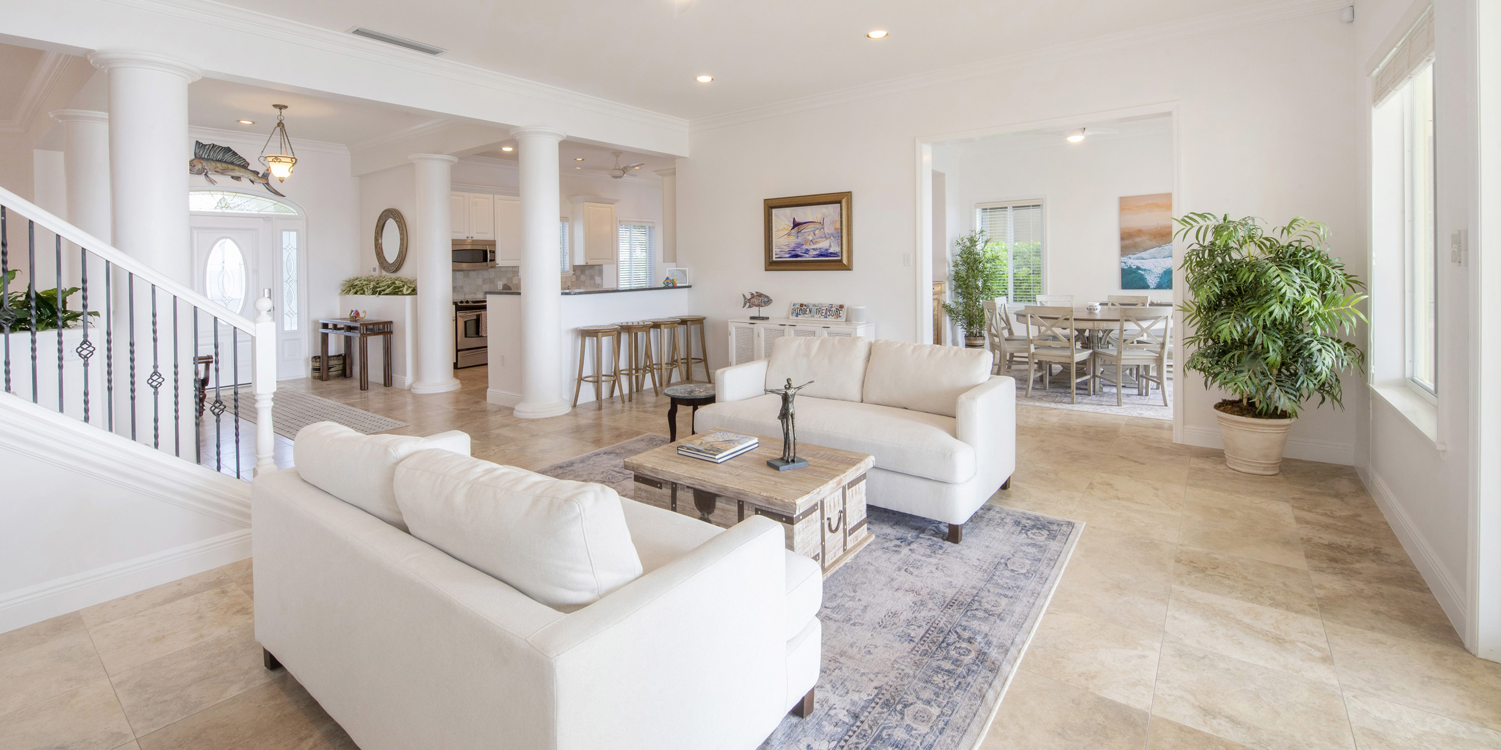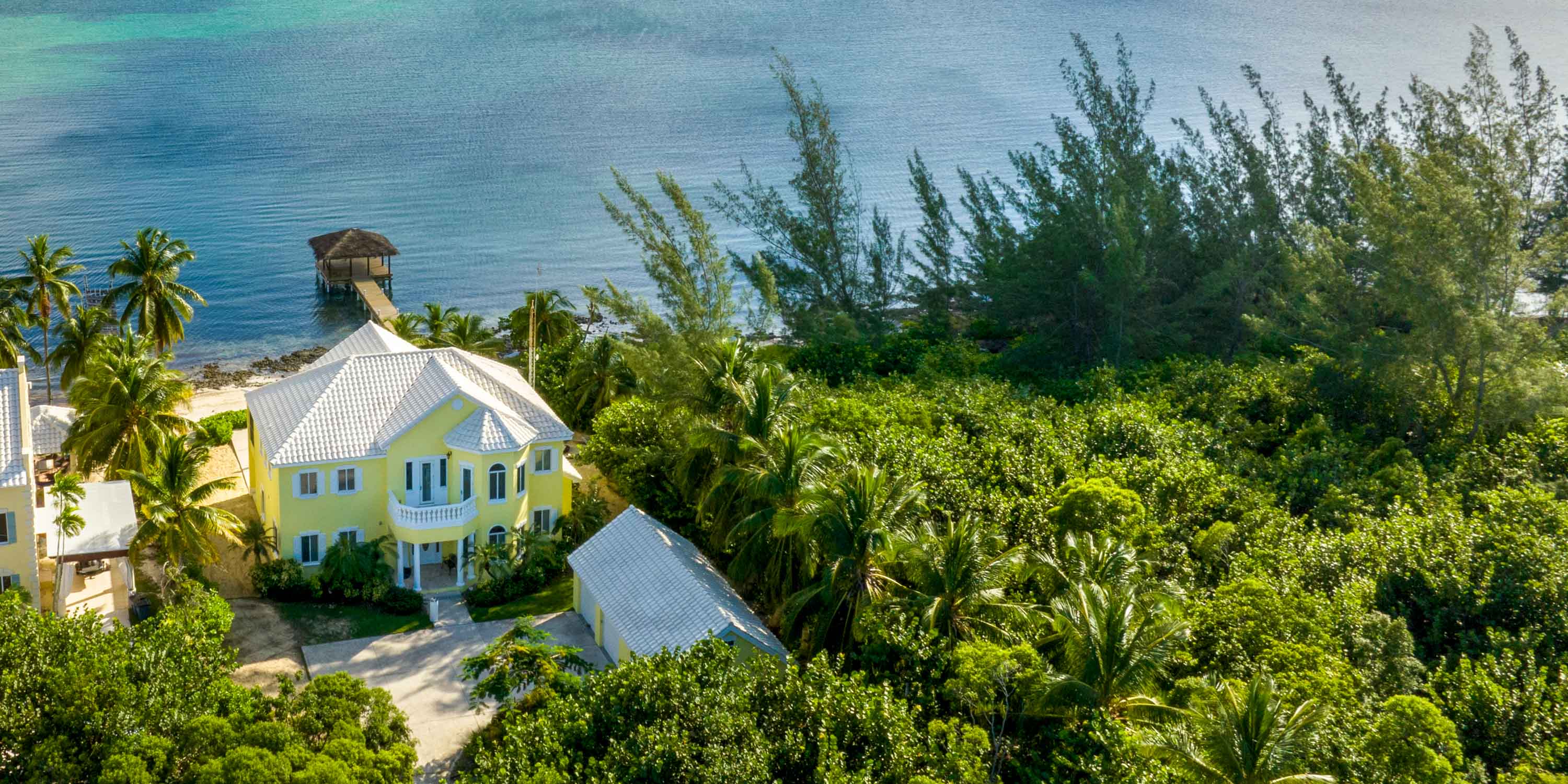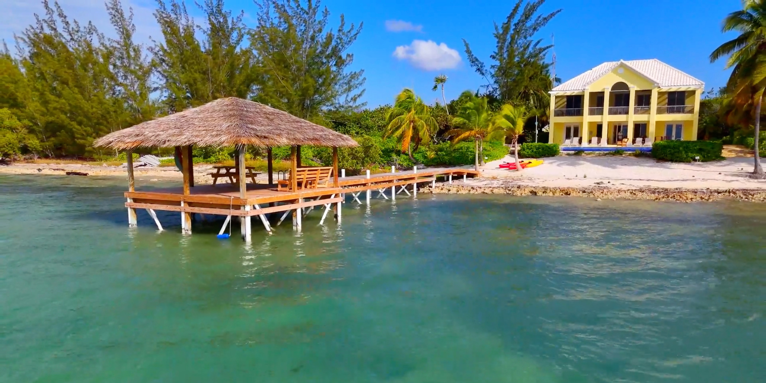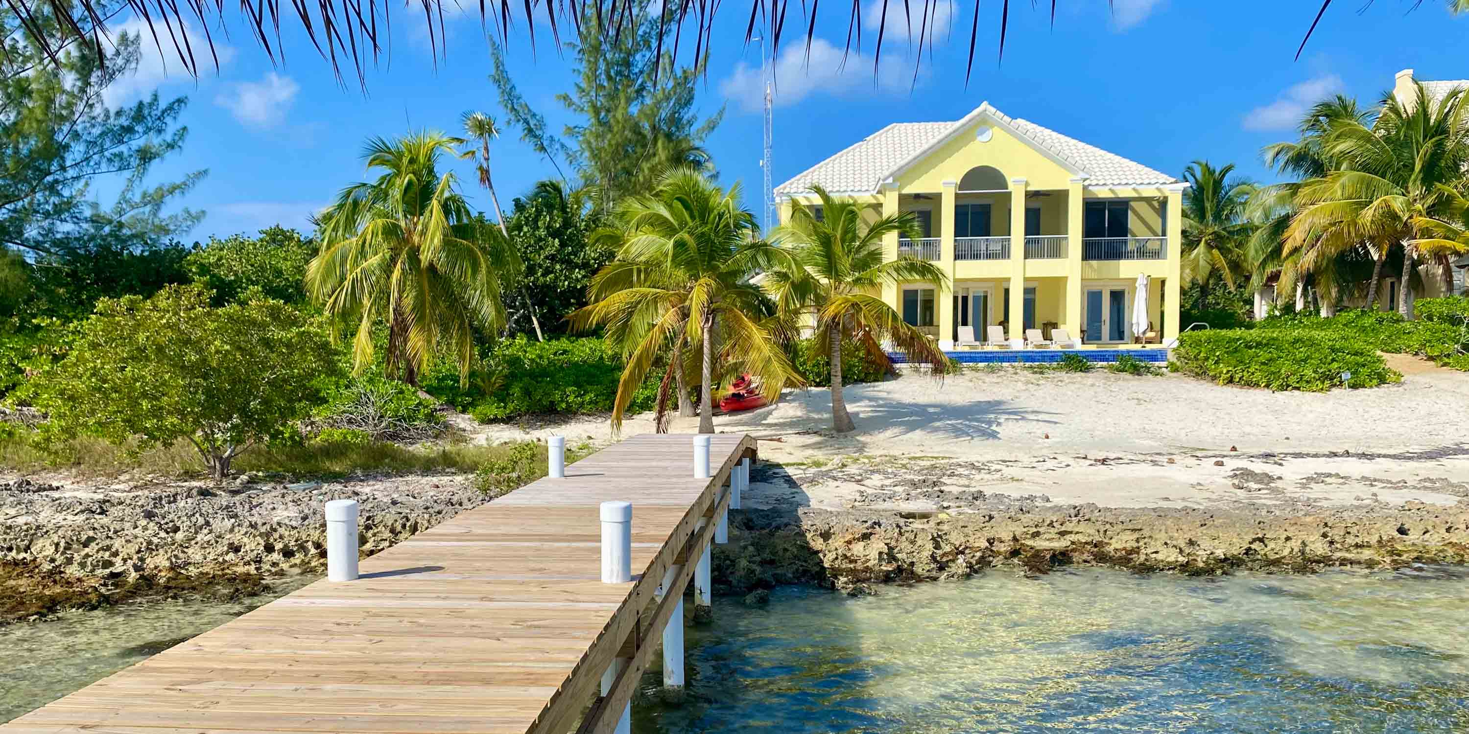 This 6-bedroom beachfront villa sits on over 100 feet of sandy beach and iron shore with convenient backyard snorkeling and breathtaking sunrise views. A newly installed private dock + hammock cabana provide gentle water entry or simply lounging above the waves.