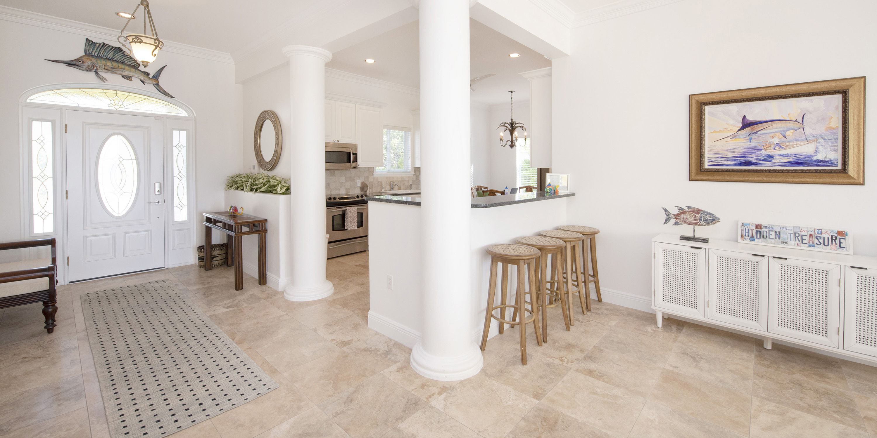 Hidden Treasure is conveniently located 30 minutes east of the airport. The villa is only 15 minutes from the supermarket, 10 minutes from Ocean Frontiers—one of Cayman’s premier dive operators—and 5 minutes from both our private fitness center and Cayman Health City.