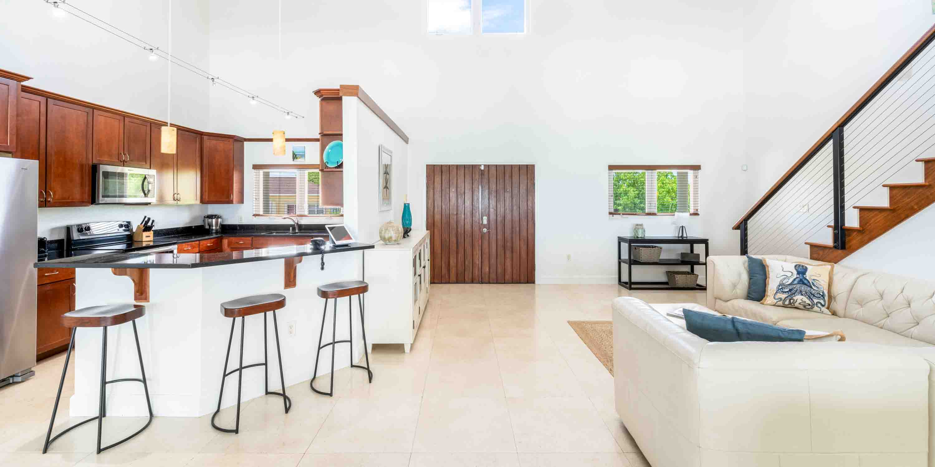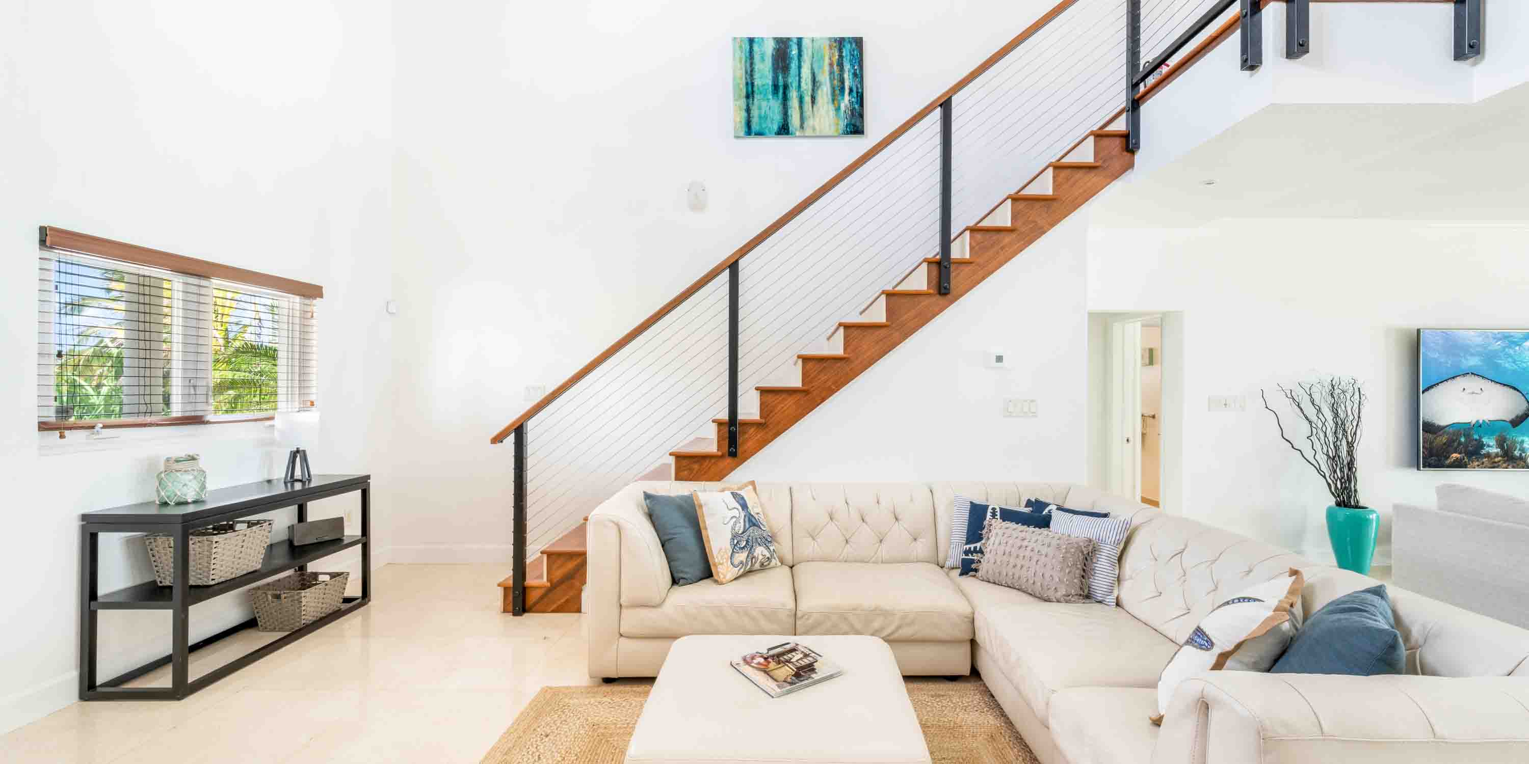 Enjoy modern design and resort-like amenities in a gated property that ensures privacy, with no neighbors to the east and a quiet residential area to the west. With 75 feet of private beachfront, you can easily access fantastic reef-protected snorkeling steps off the home's backyard—just remember your water shoes! Don't forget to visit our Welcome Center for your free snorkel gear to use throughout your stay.