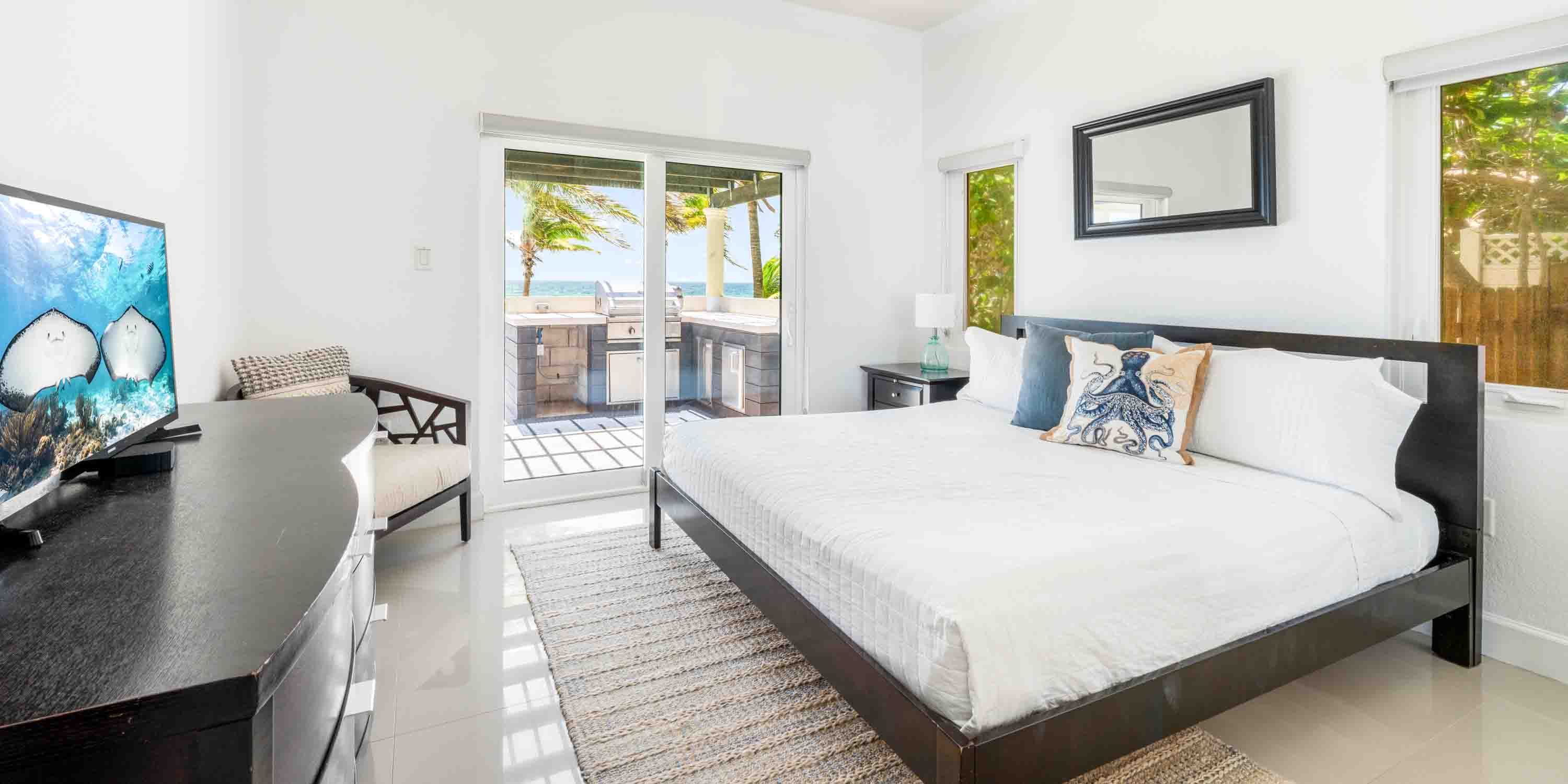 - West Suite - lower-level, king bed, ocean views, walk-out access to the pool deck, cable television, Xbox One gaming console, ensuite with shower bath.