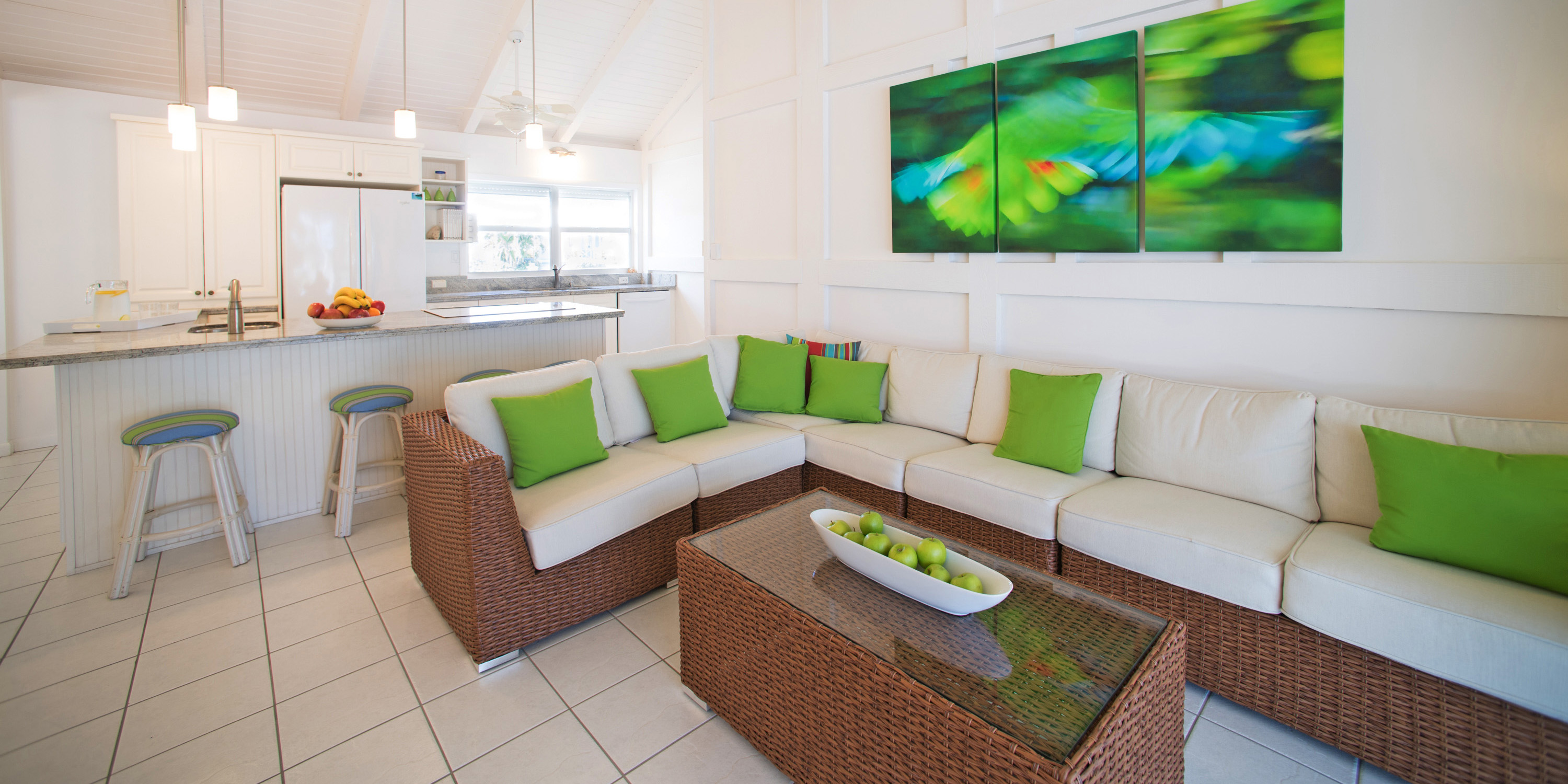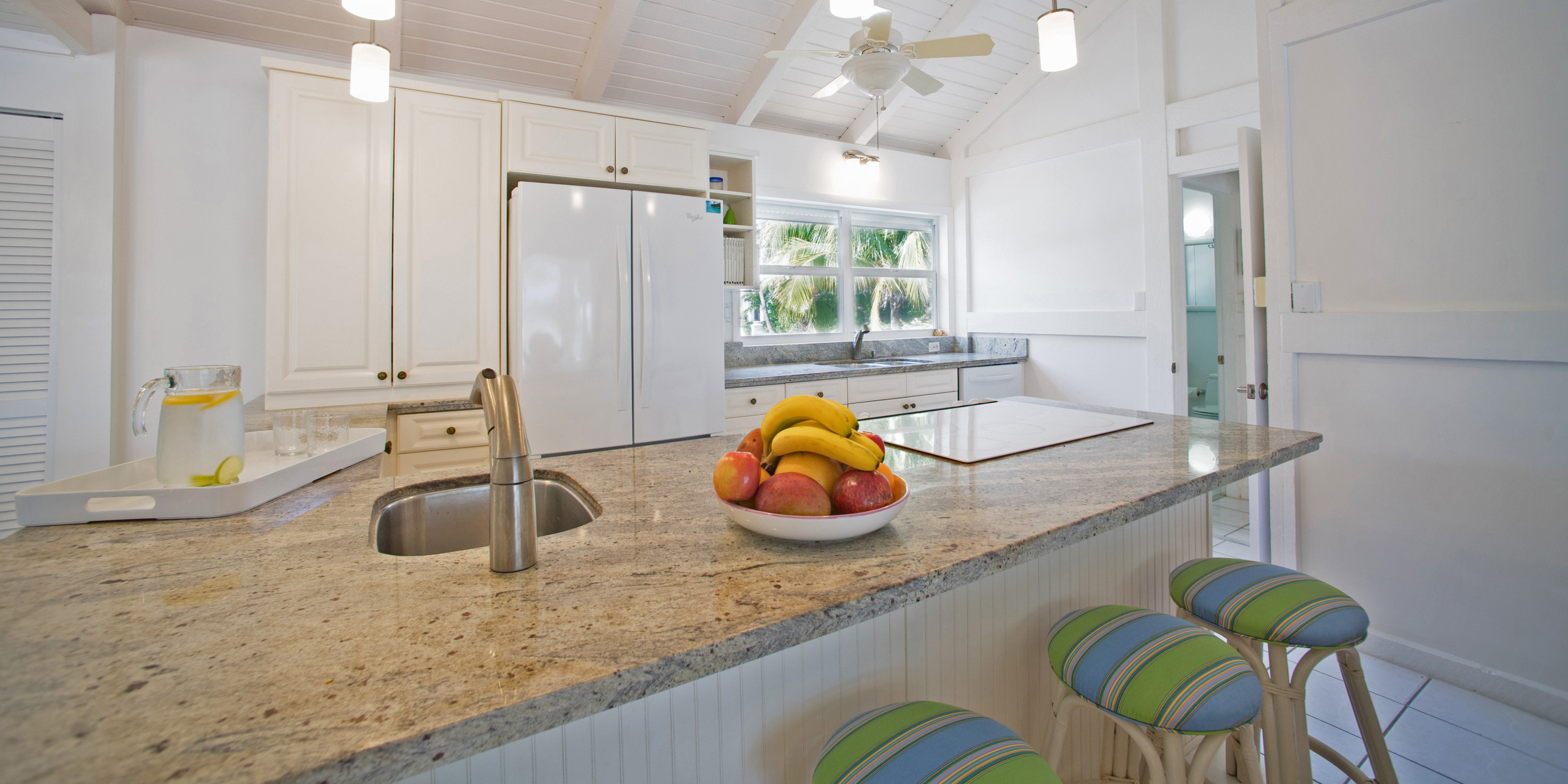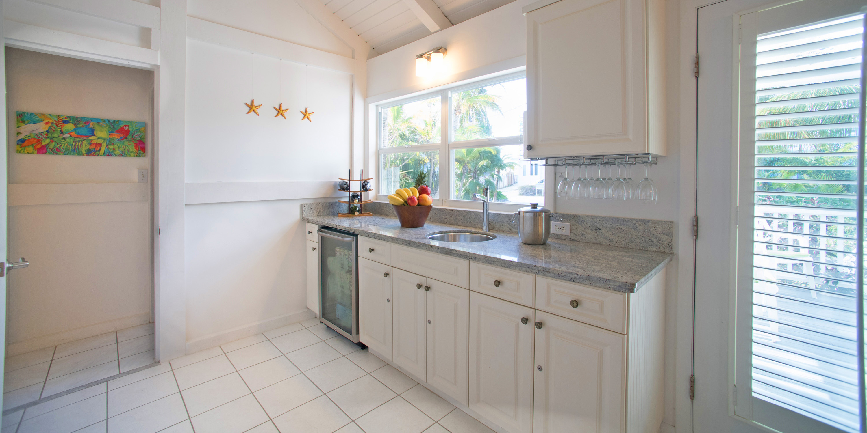 - Vaulted ceilings, clean and crisp interiors with a chill island vibe