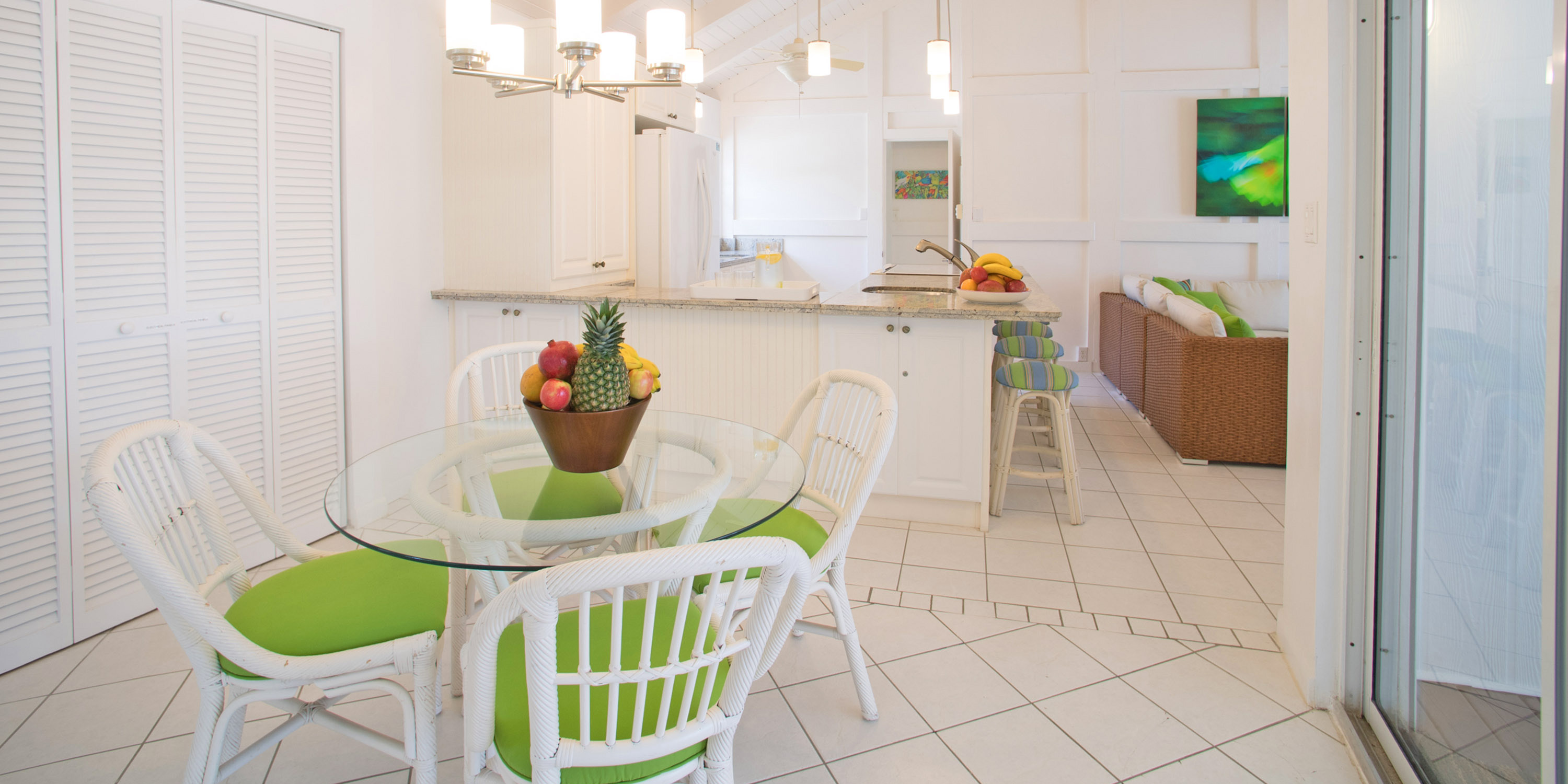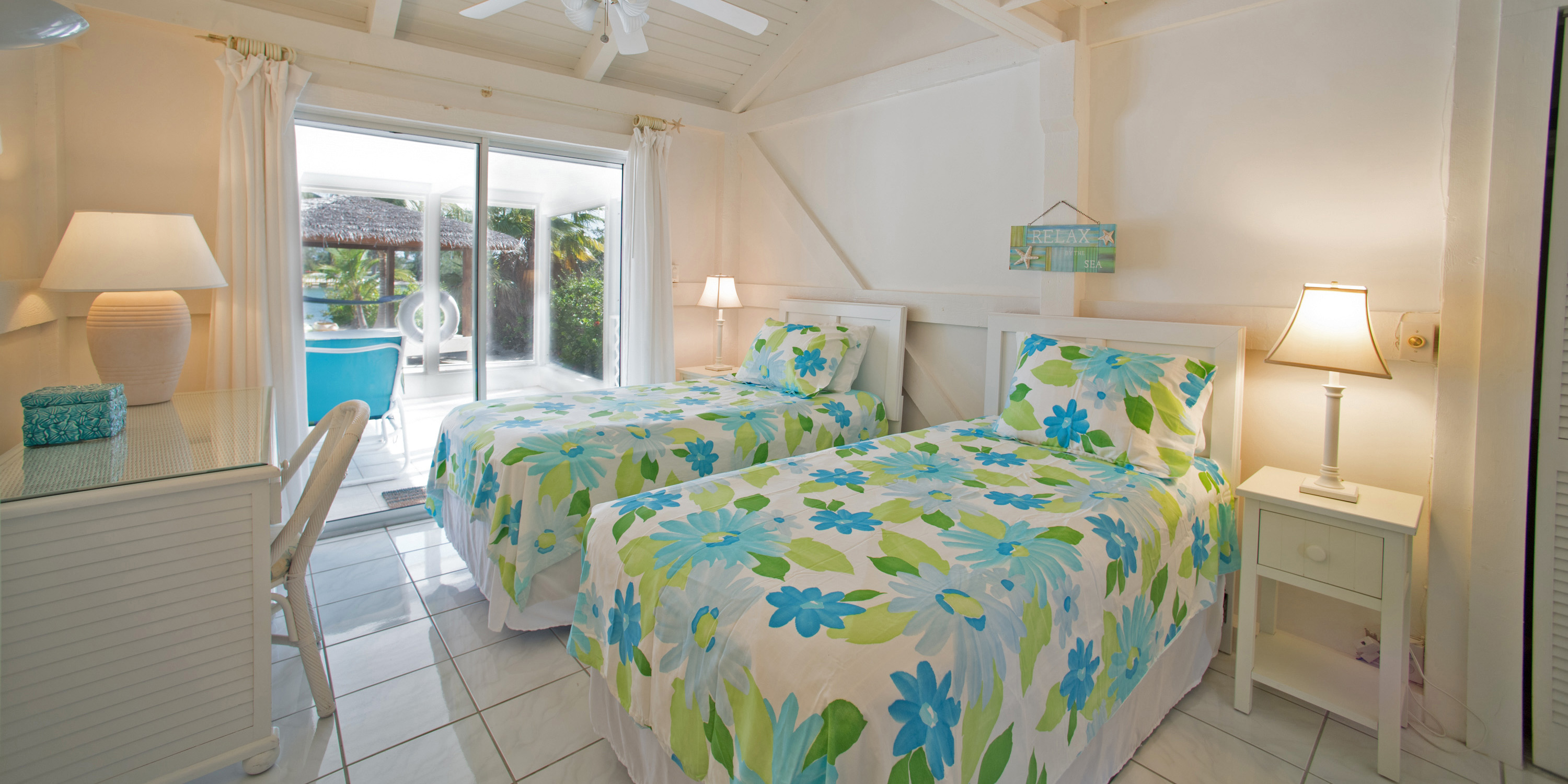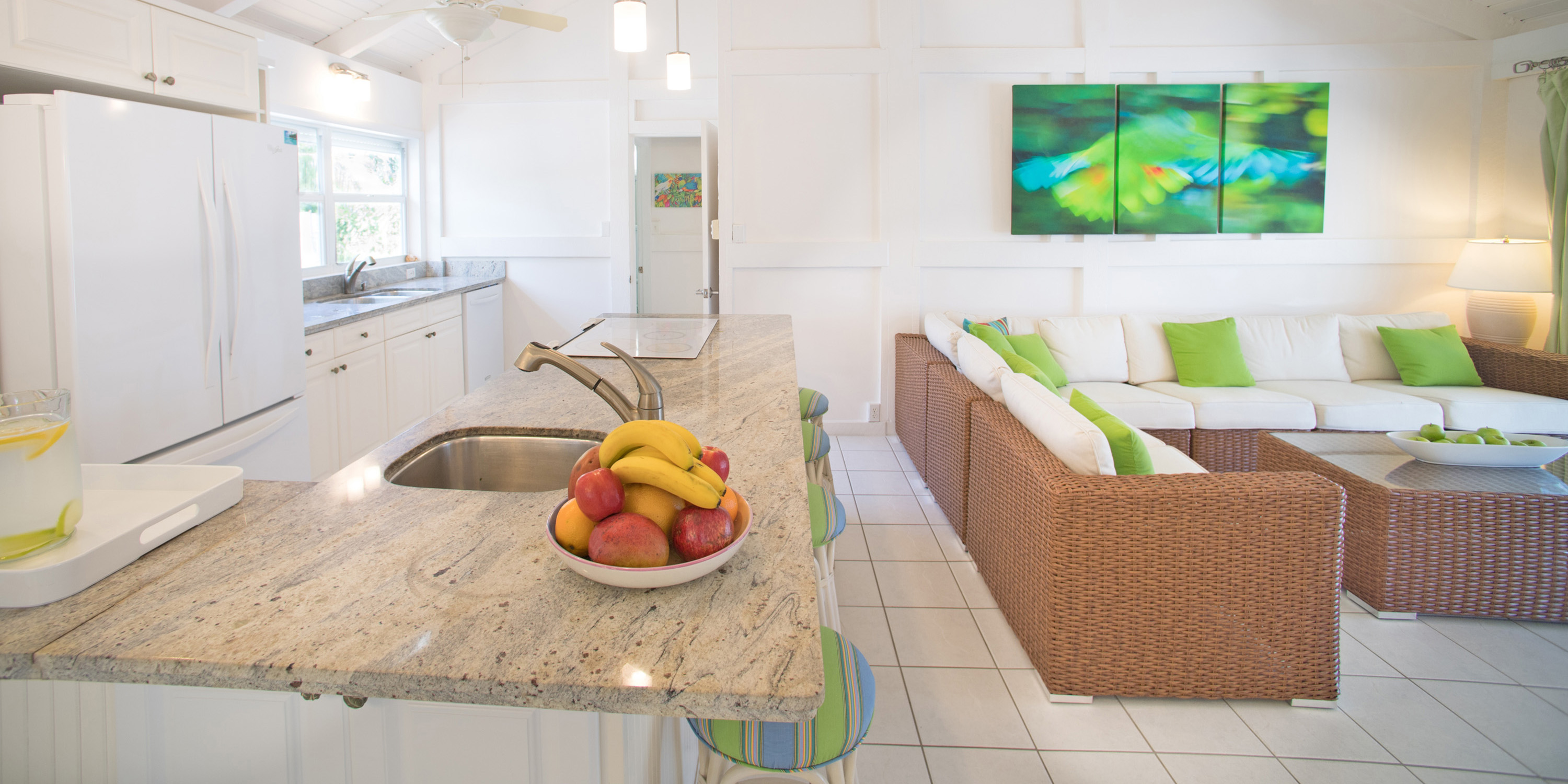 - Vaulted ceilings, clean and crisp interiors with a chill island vibe