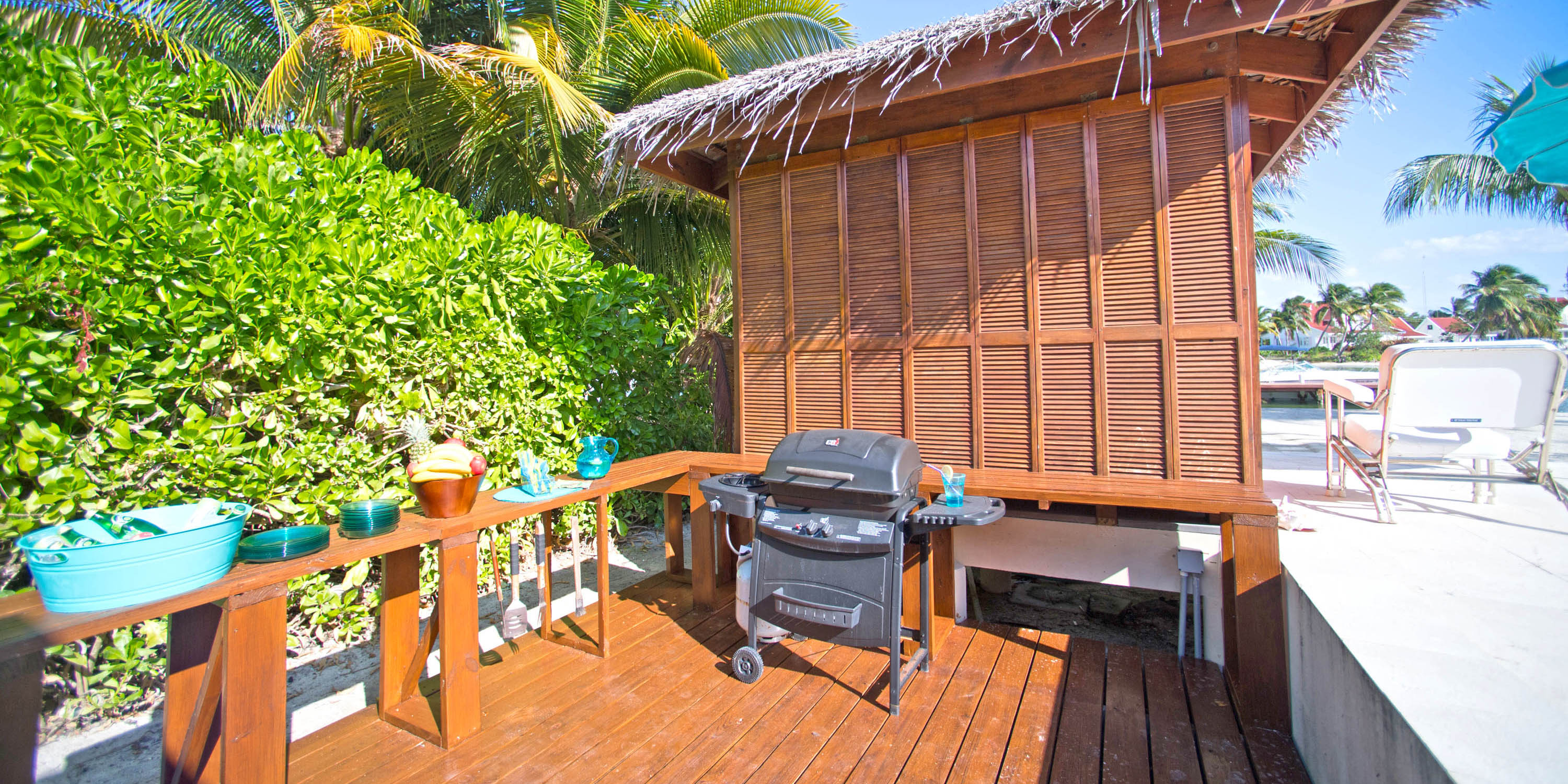 Just For Fun has all the amenities for a truly fun getaway including an outdoor grill, a private pool, and a palm-thatched hammock cabana.