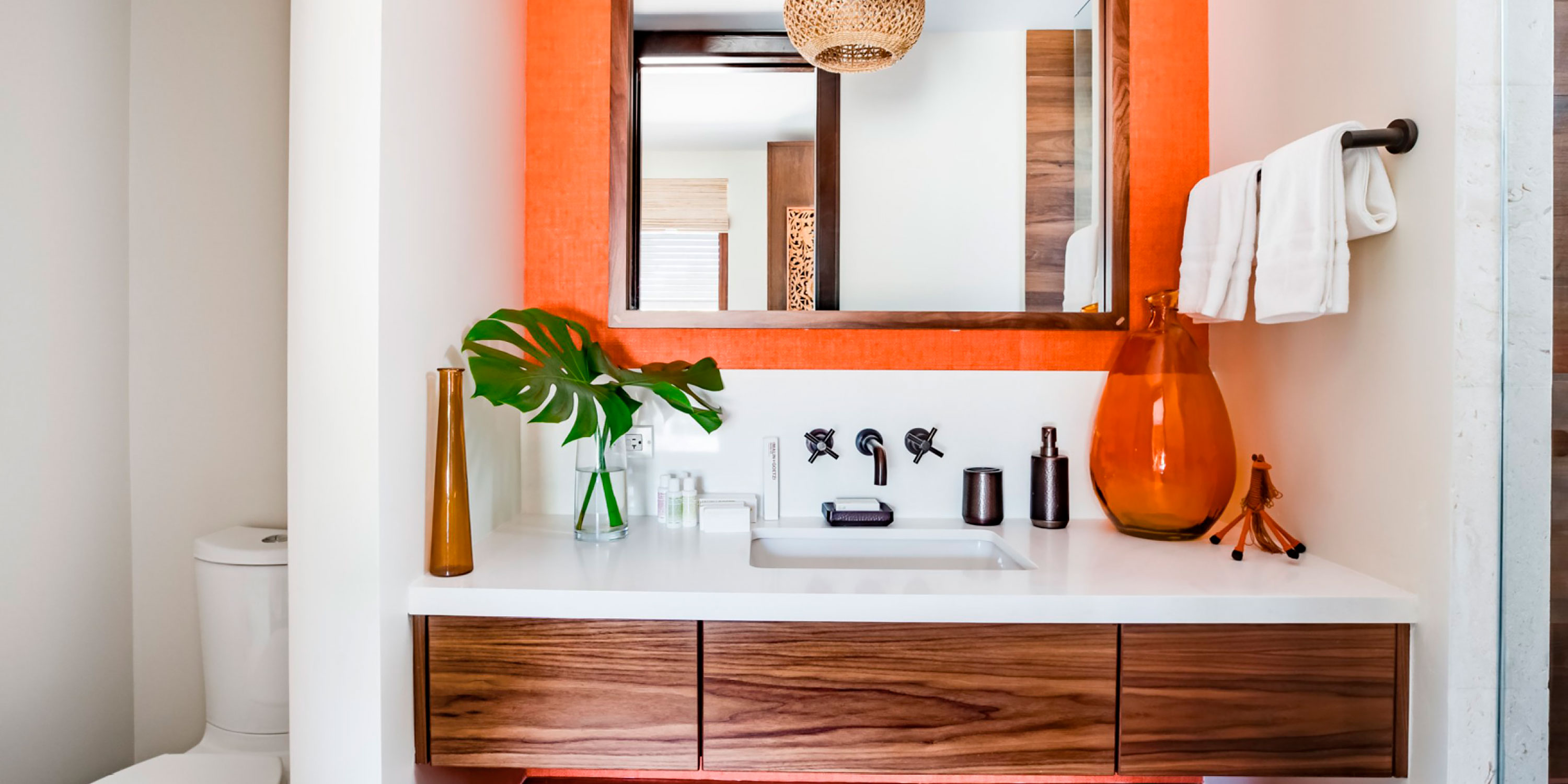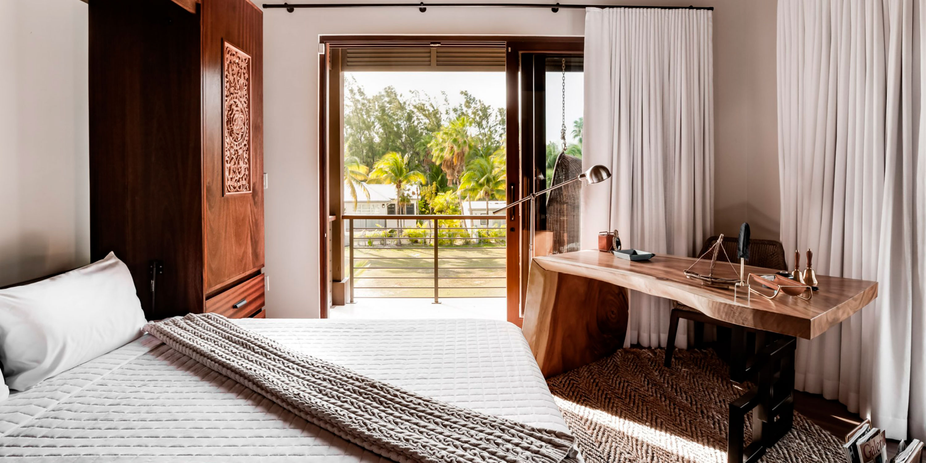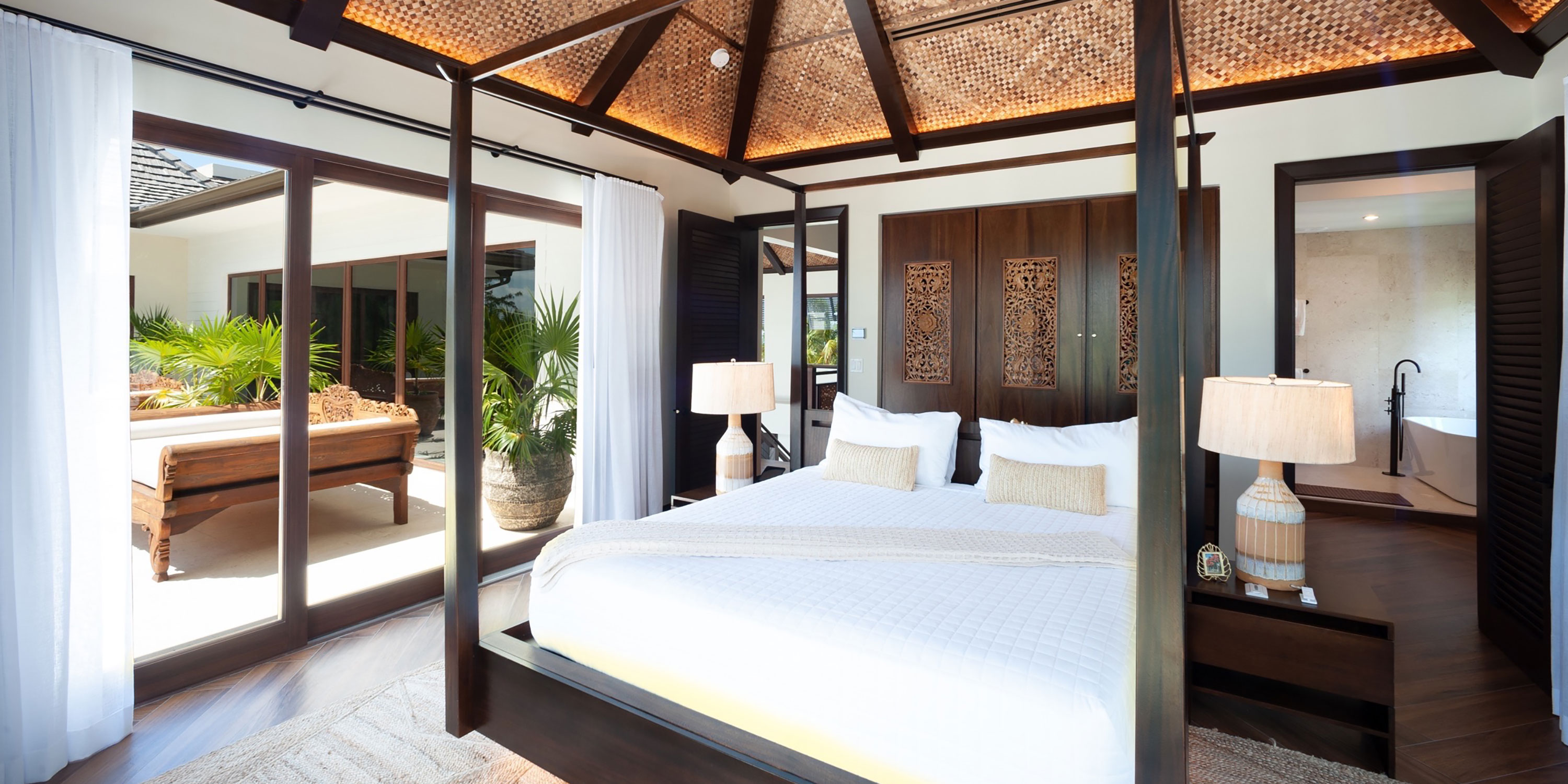 Right as you walk into this stunning retreat, you'll see the beautiful blues of the Caribbean through the two stories of glass. Step inside to the Bali-inspired great room that you’ll never want to leave.