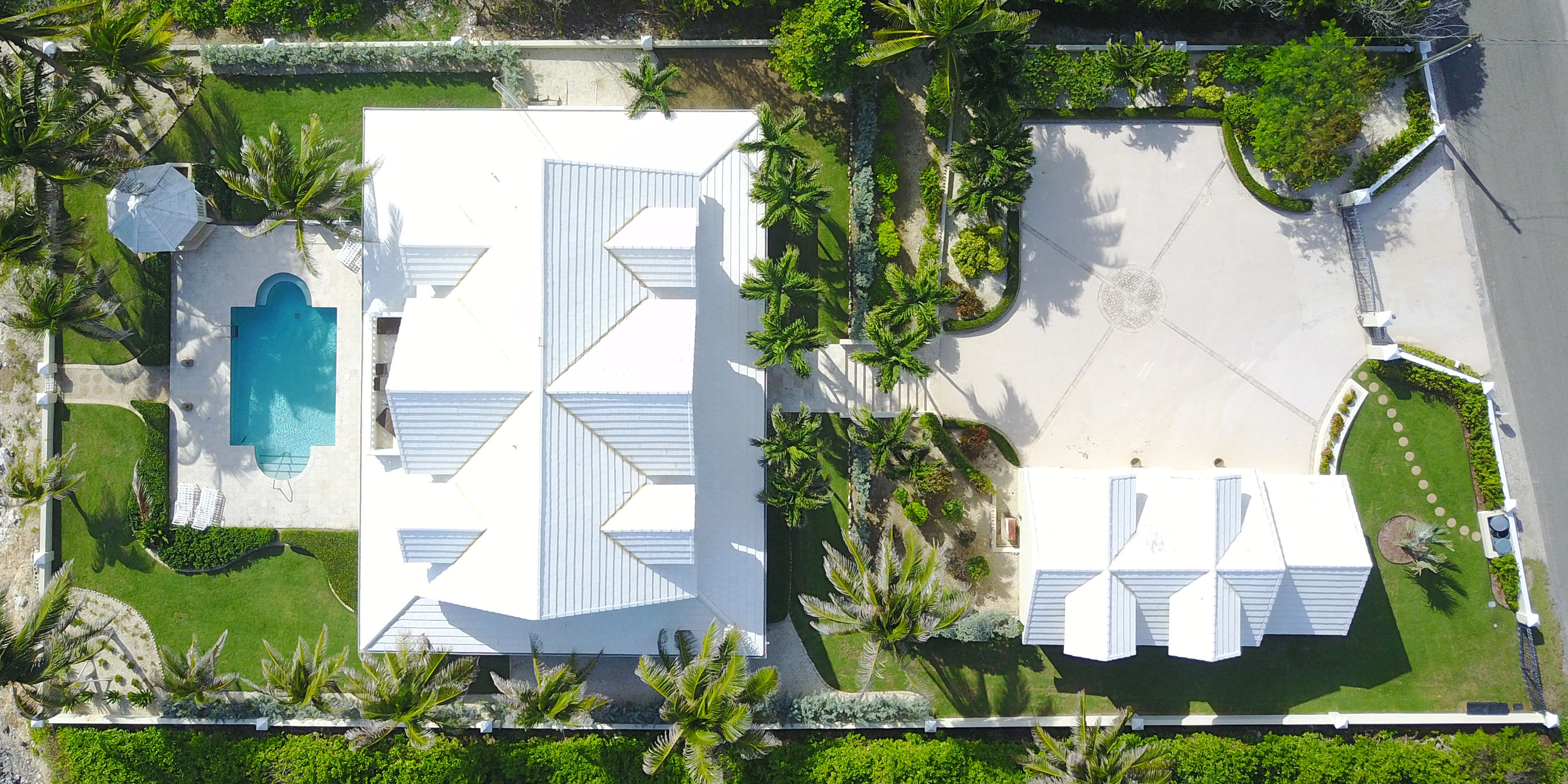 The freshwater pool has a wide sundeck with lounge chaises as well as a gazebo for al fresco dining by the sea. A zoysia grass lawn feels cool on bare feet and the estate has many mature palm trees for additional shade.