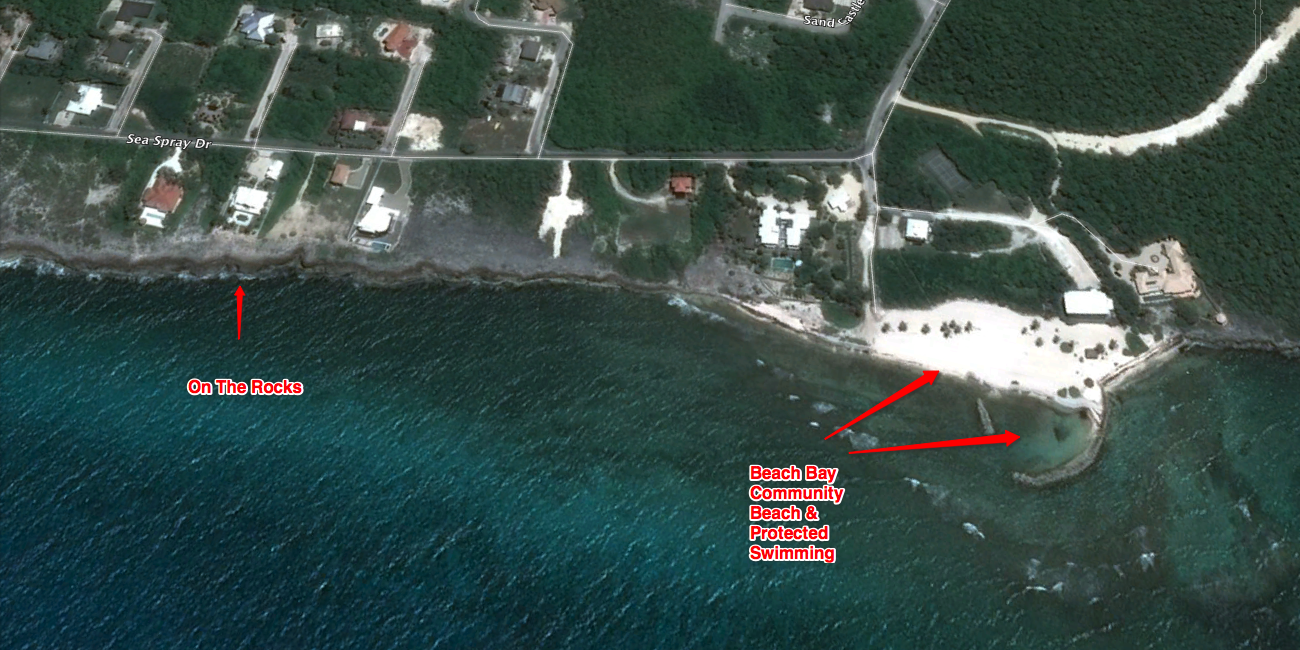 This executive residential development of "Beach Bay" has about 12 homes, like On The Rocks, that all share a sandy beach cove with protected snorkeling just east of the villa. Parking is offered if you prefer to drive. The owner has 6 beach chairs for you to use. If you need more, please ask the manager.