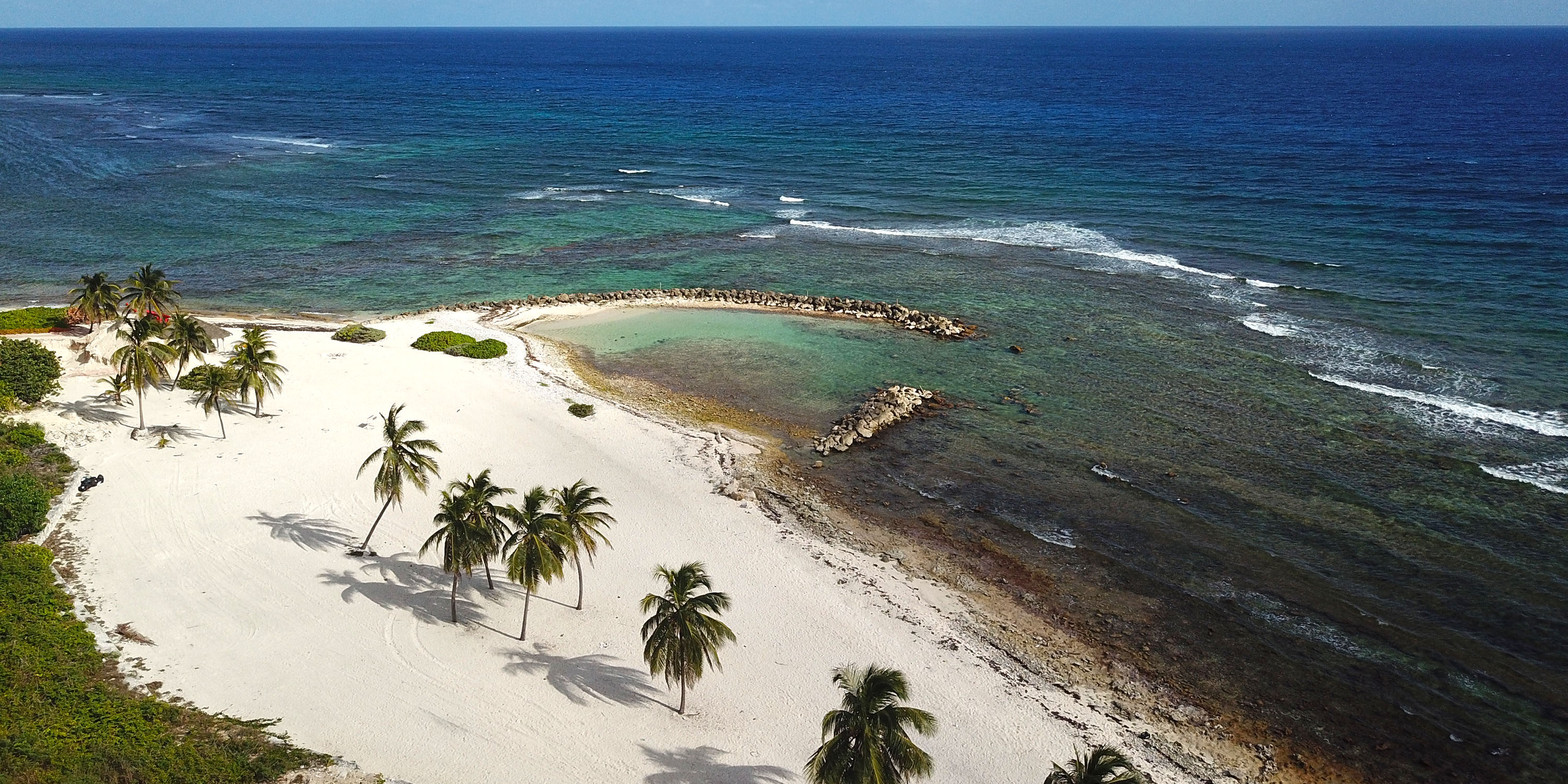 The beach offers a sandy entry into the water and multiple palm trees provide shade--no need to take an umbrella! As this is still a marine environment, we recommend either swim fins or stretchy water shoes to protect the feet from sharp shell shards, broken urchin spines, etc.