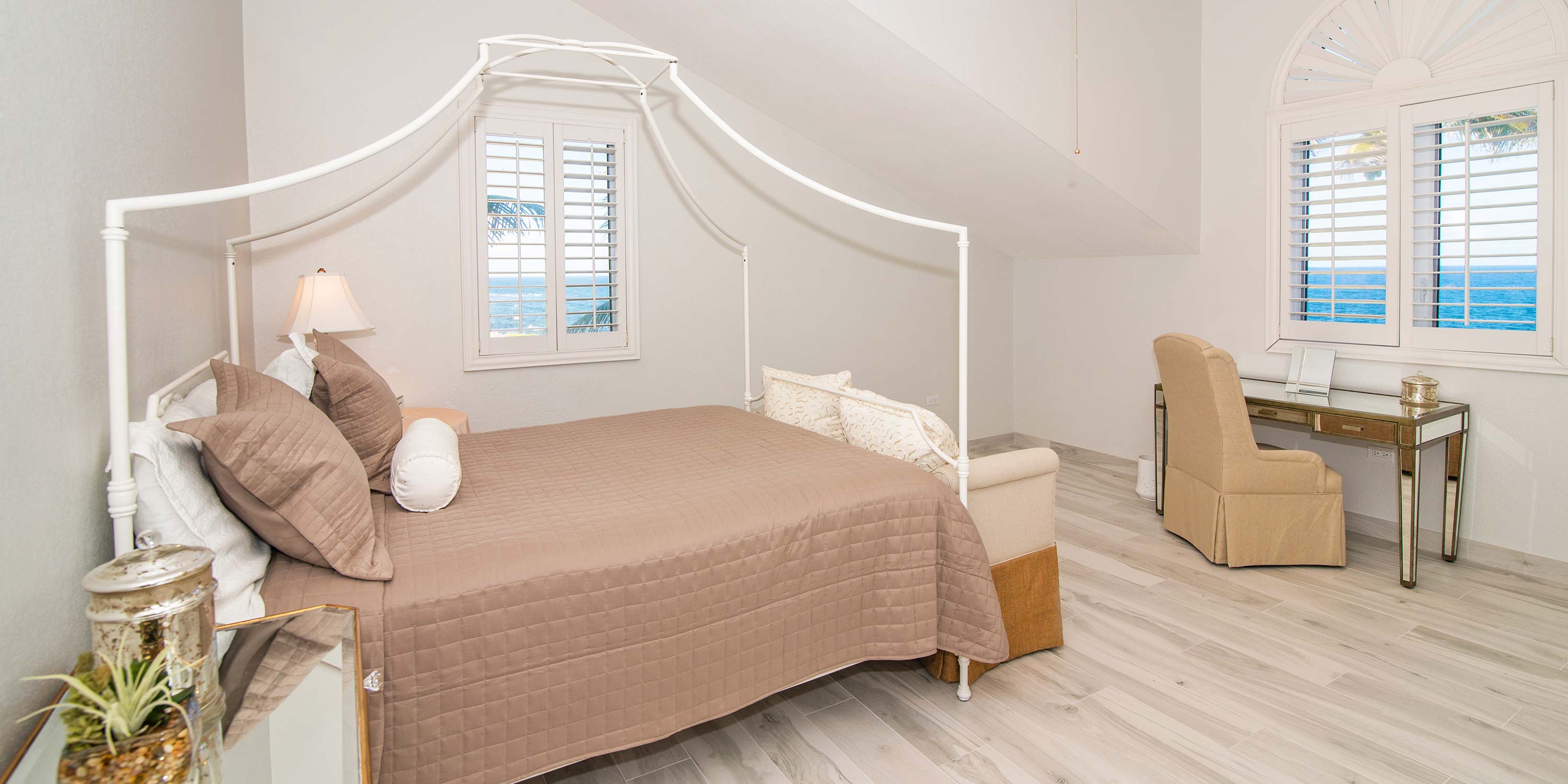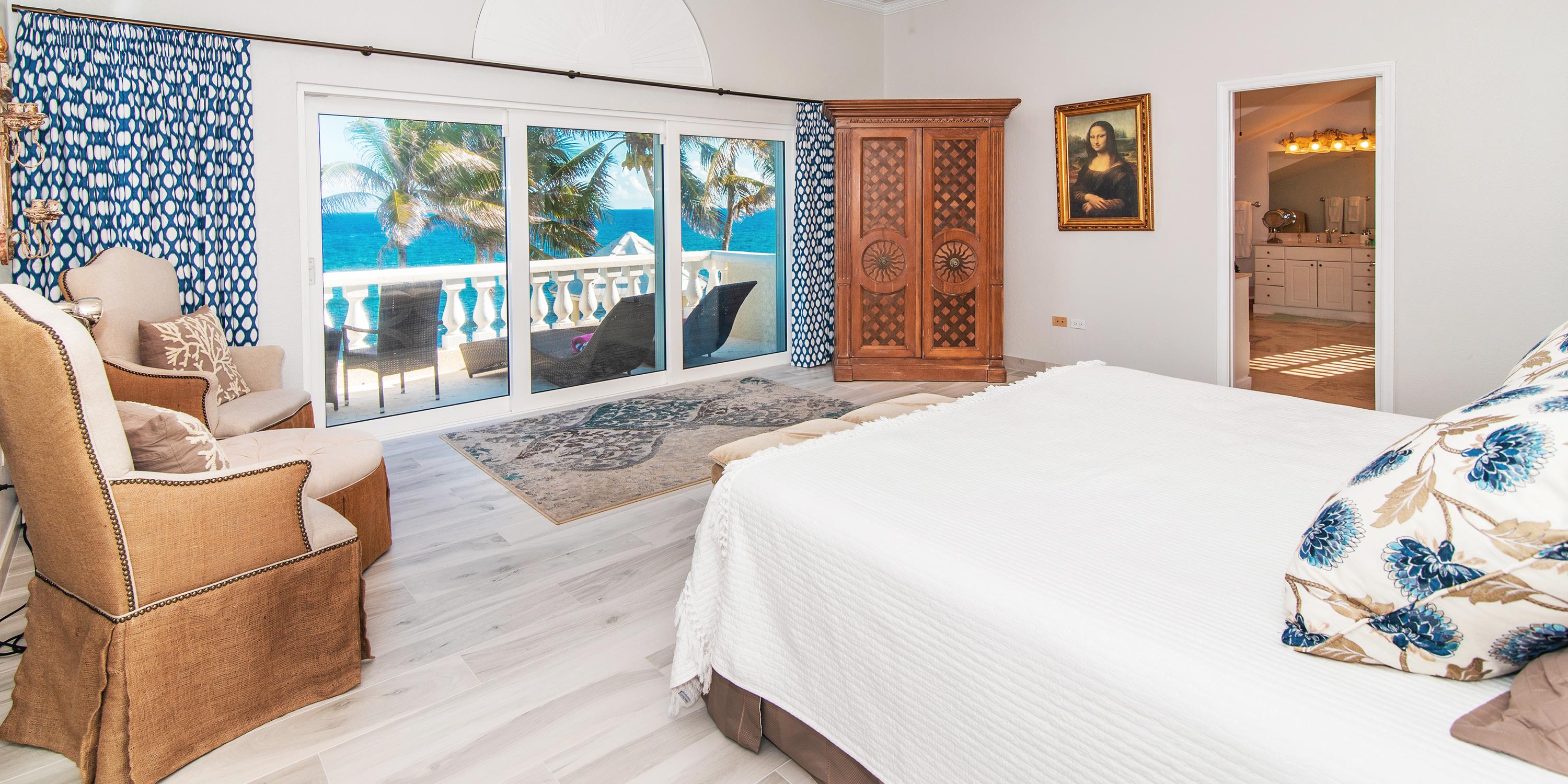 - Enormous oceanfront primary suite with walk-out access to a private furnished balcony.