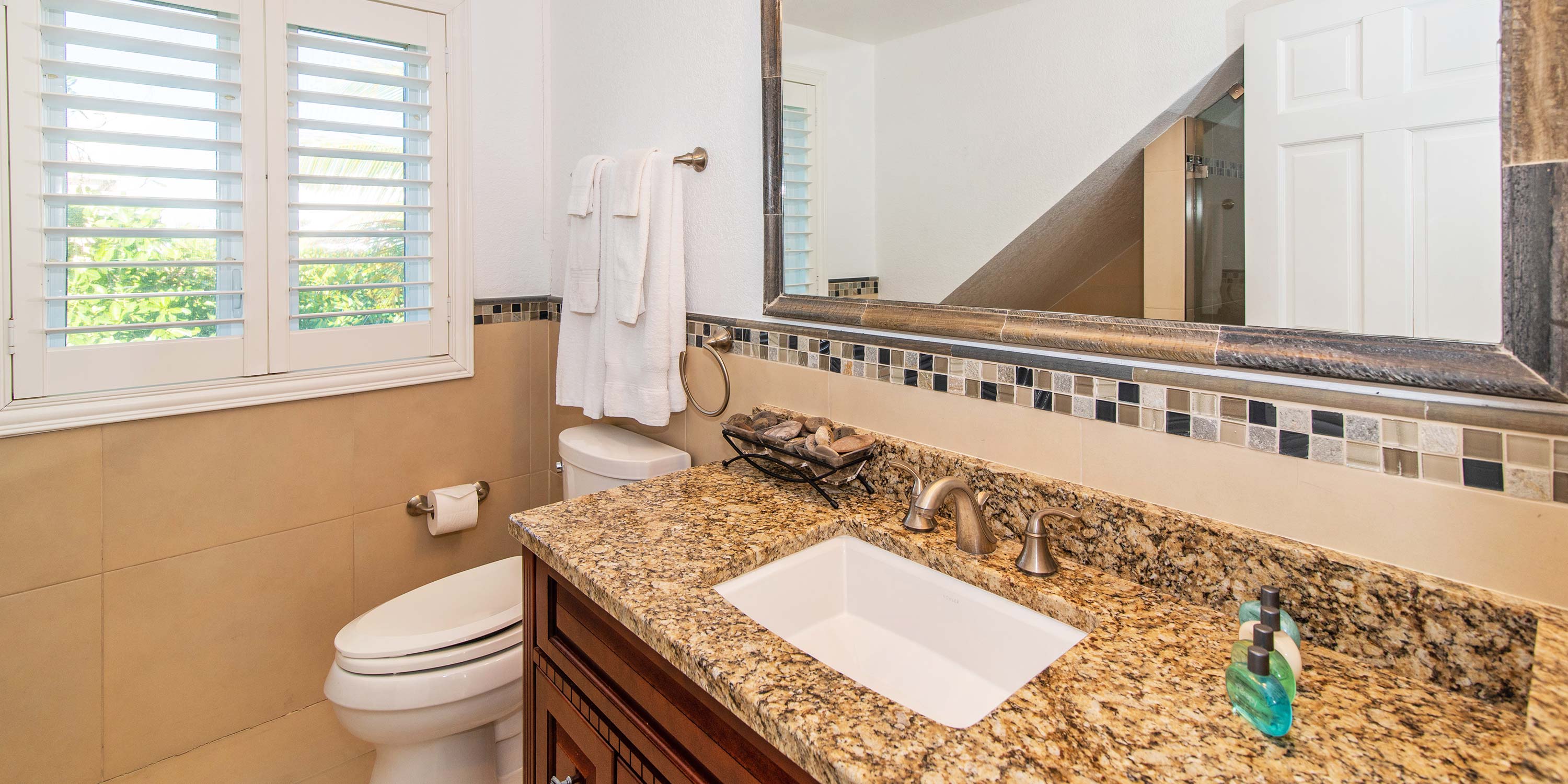 With heavy landscaping on both sides of the property, On The Rocks provides guests with enhanced privacy and quiet enjoyment throughout their stay.