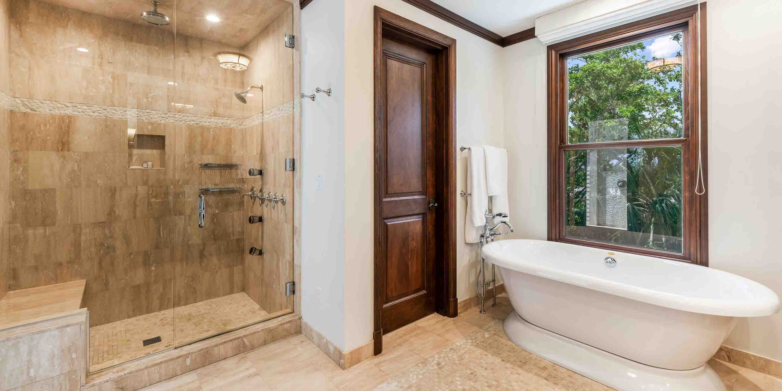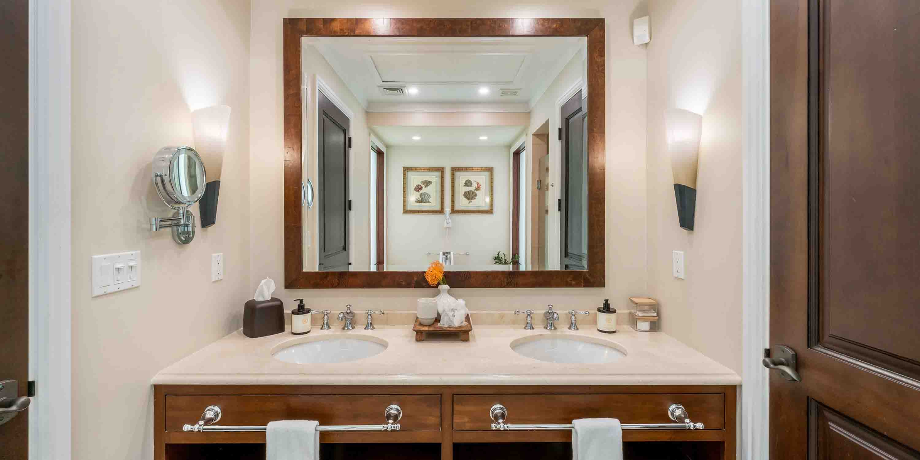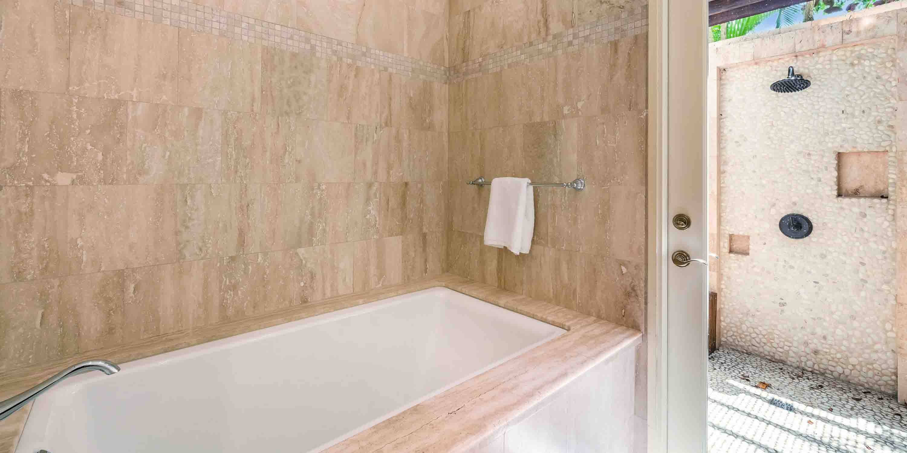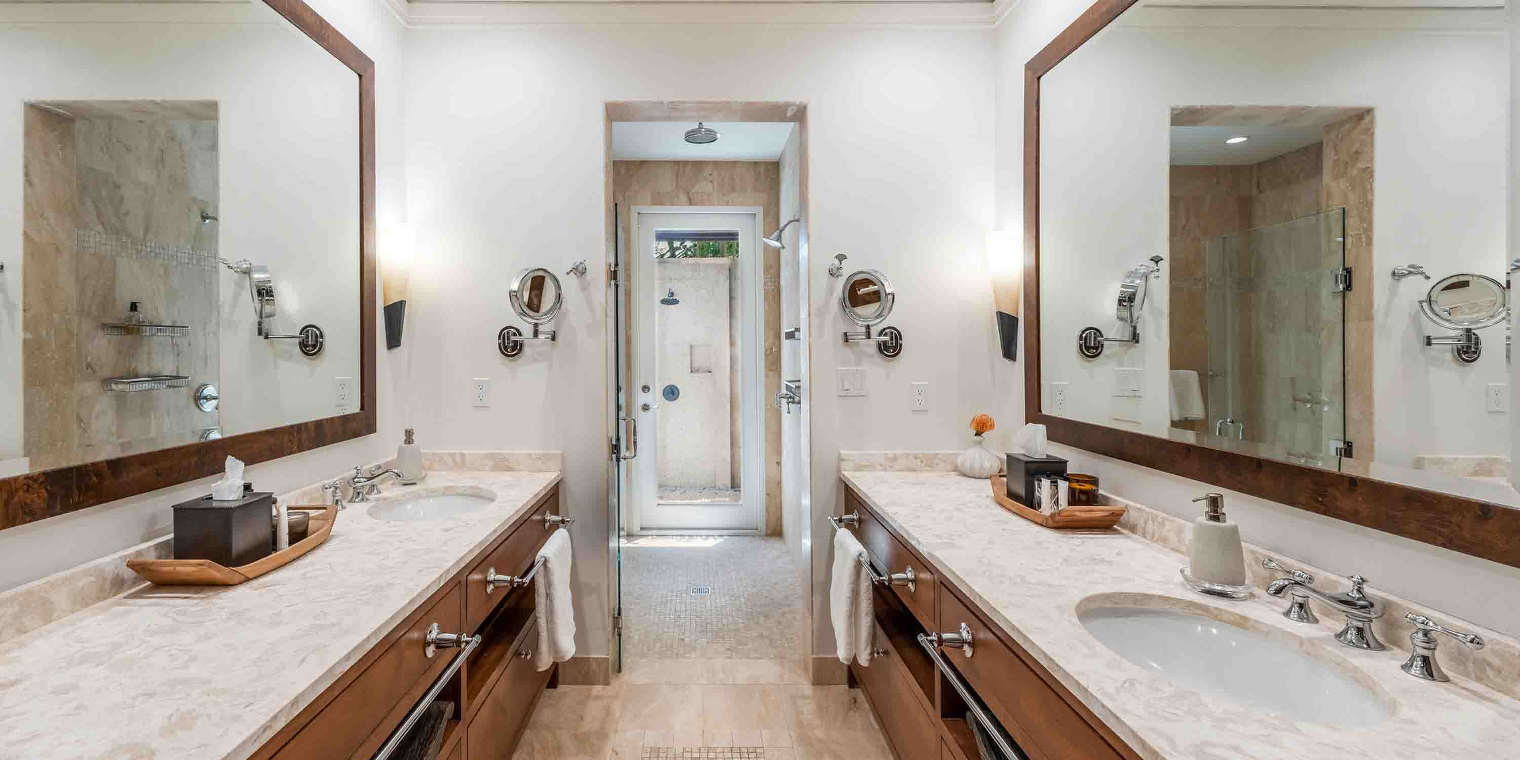 You will find 4 bedrooms in the main villa plus one bedroom in the detached guest cottage. There are three luxurious ensuites in the main house, including an oversized shared bathroom on the lower level connecting two guest bedrooms. There's also a powder room on the main level.