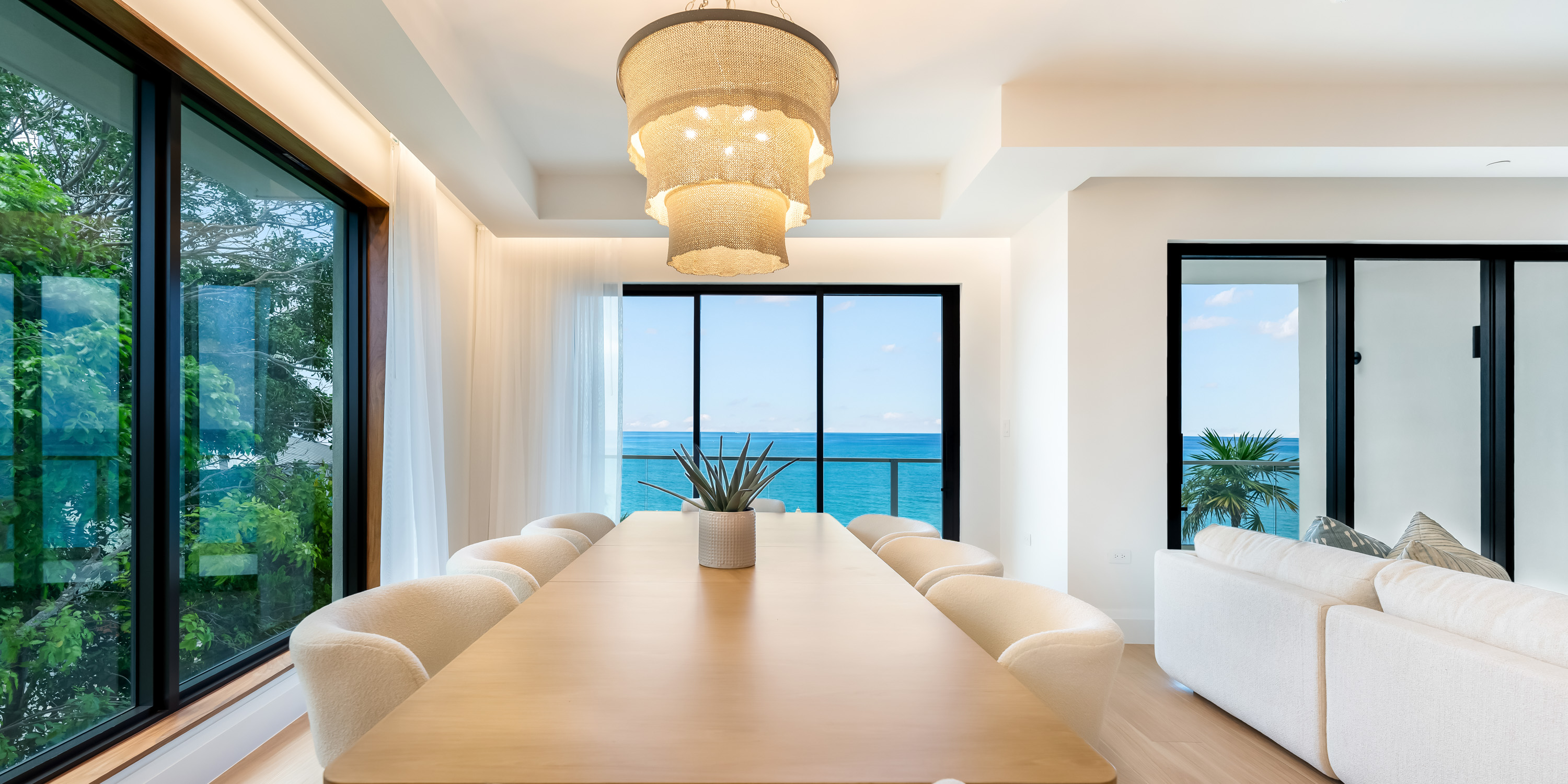 This oceanfront jewel offers six spacious 4-bedroom residences with dazzling ocean views. A deep list of unique amenities includes a rooftop terrace with a fitness center and shared pool. Beach access via a private gated sundeck includes beachfront loungers and sunbrellas with a staircase to the barefoot sandy beach.