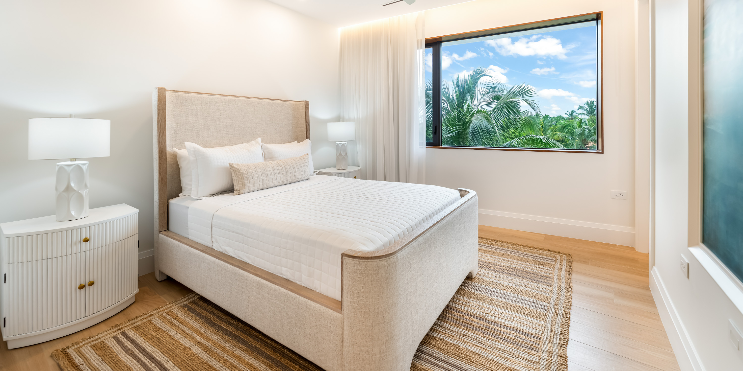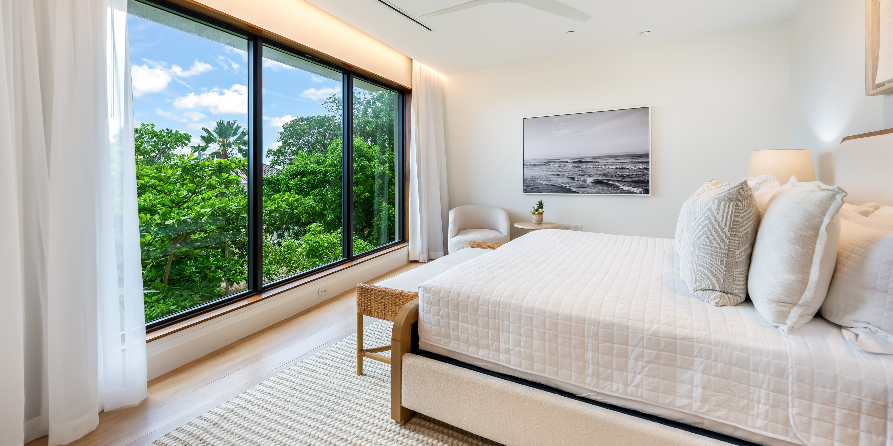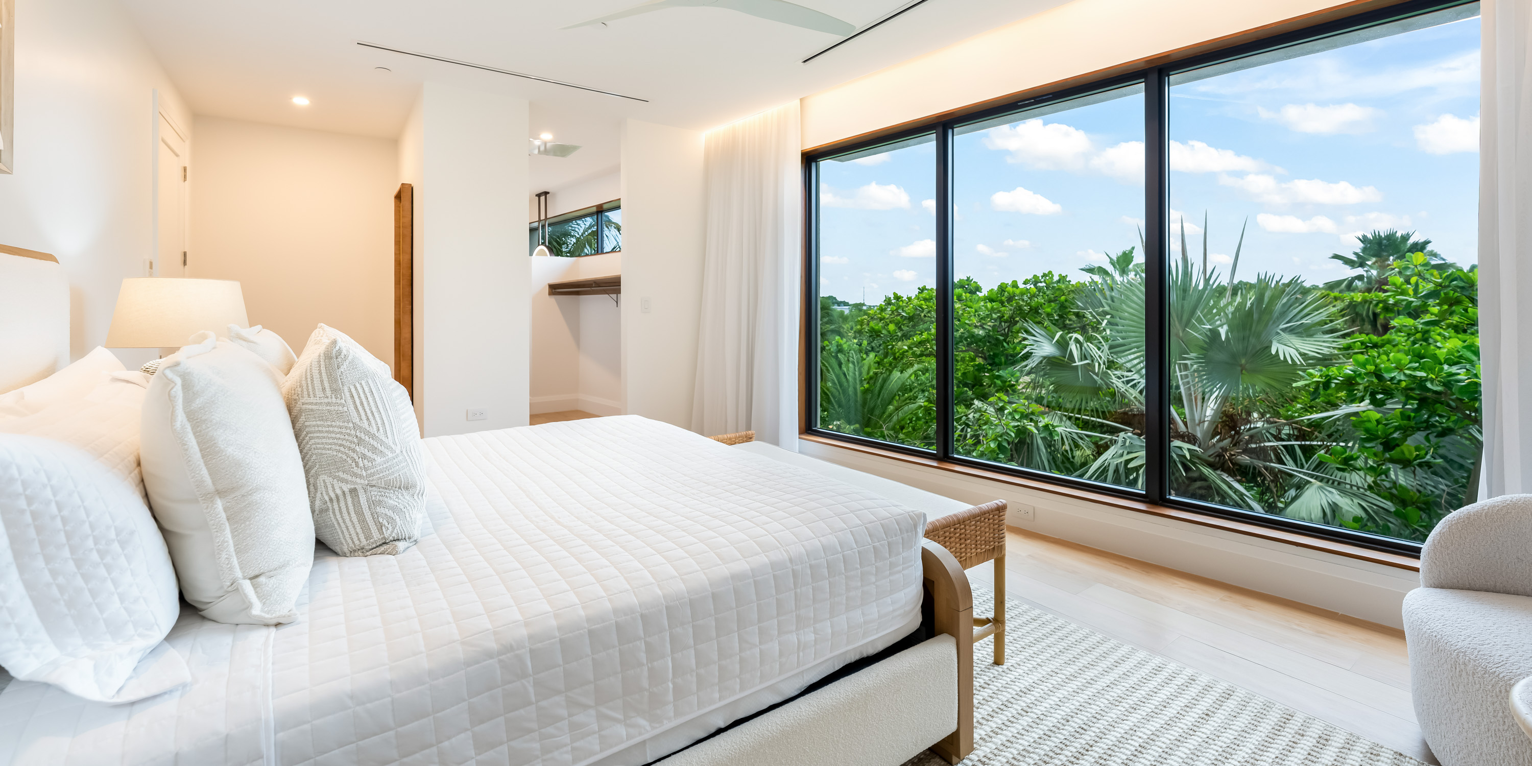 - Bedroom 4: king bed, garden views, closet, ensuite with shower.