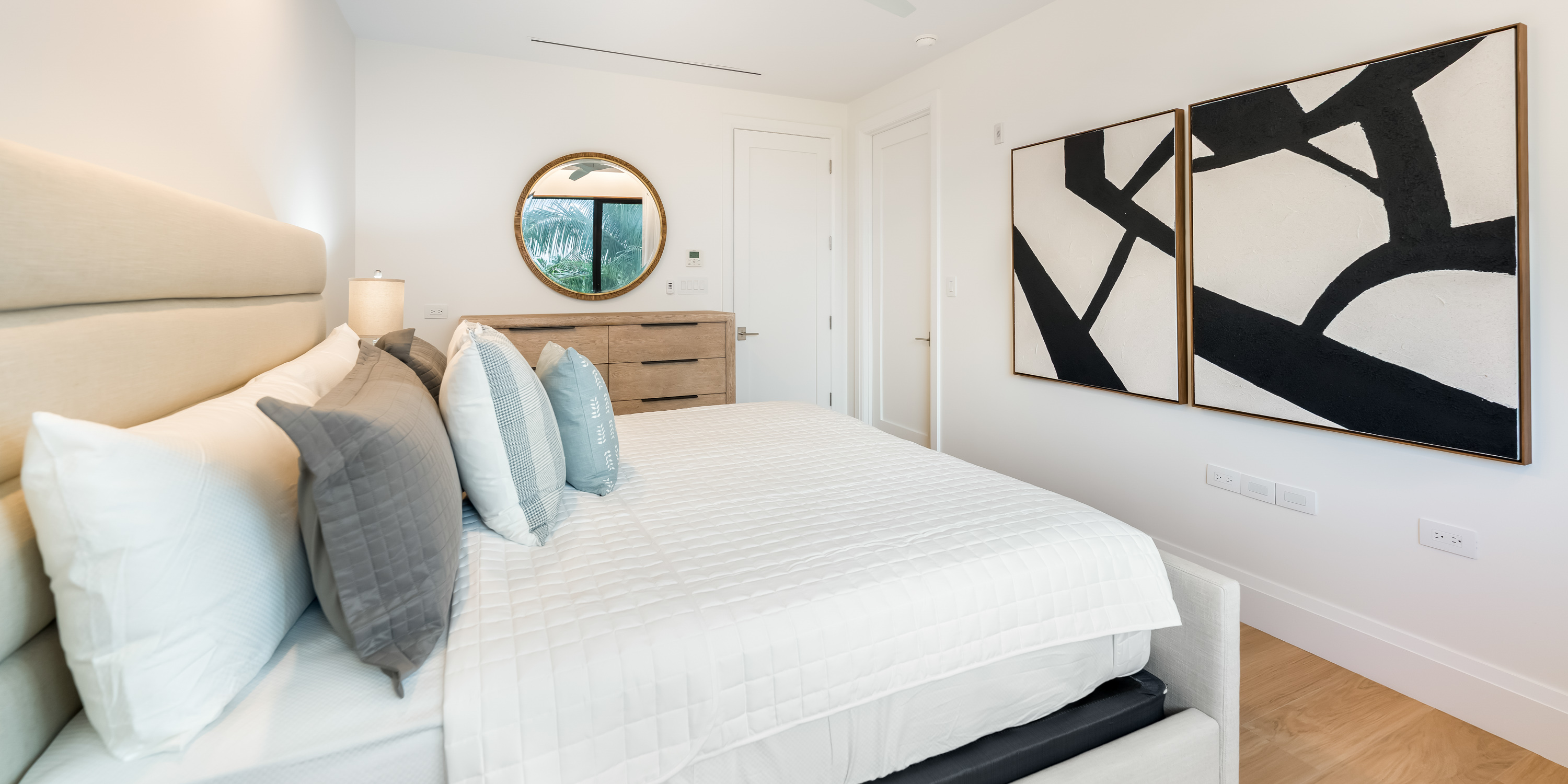 - Bedroom 2: king bed, garden views, closet, ensuite with shower.