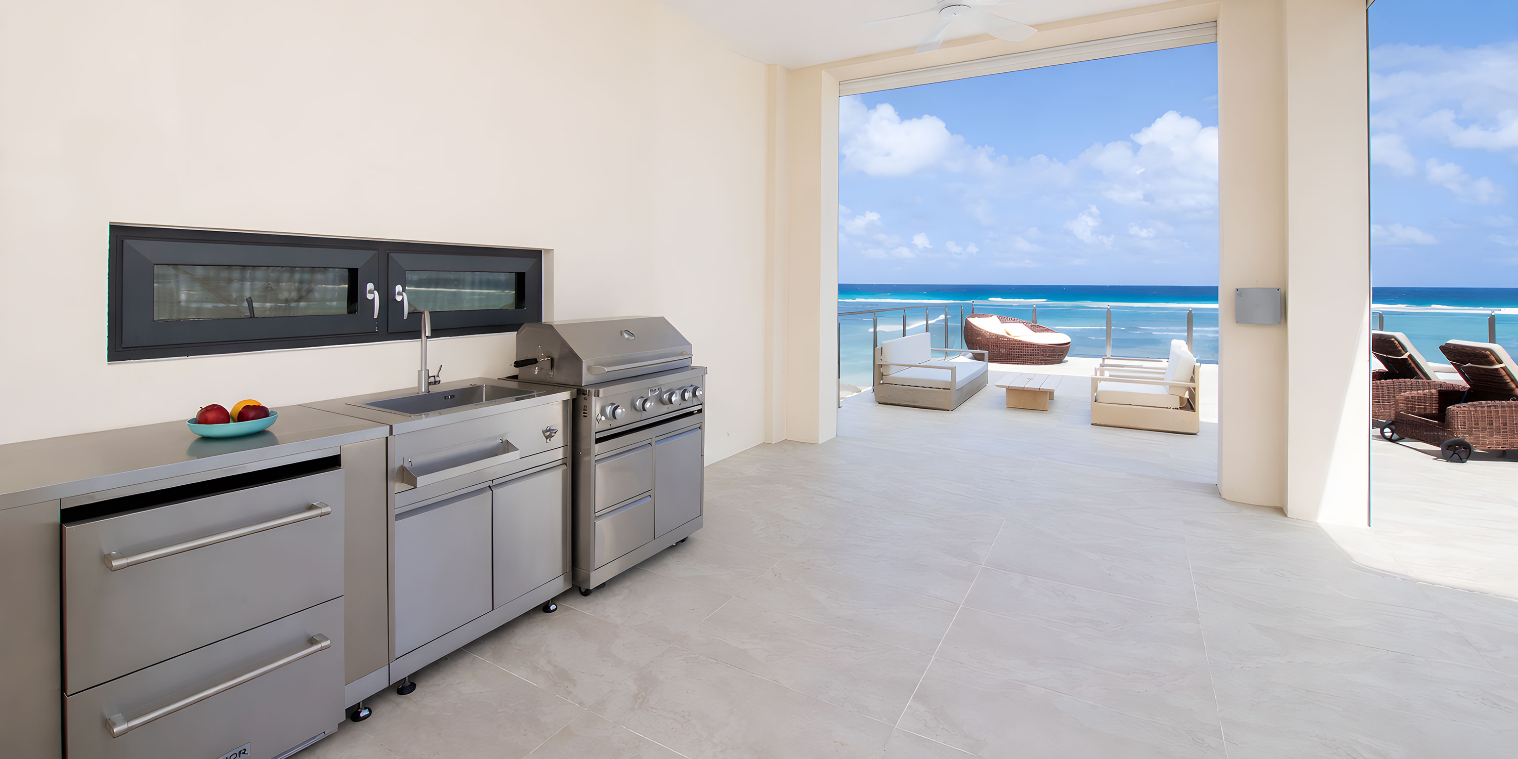 The outdoor kitchen pavilion along the pool deck will delight grill masters with a suite of appliances and a propane grill. Elevate your stay by hiring a private gourmet chef for a night of fine dining or poolside brunch service. The formal dining area seats 14 guests, and the veranda dining tables seat 12.